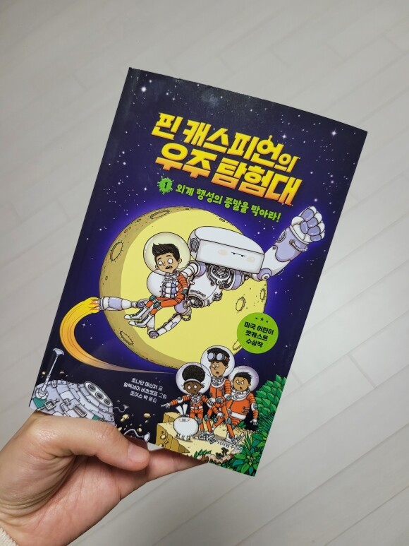우주에서 태어난 최초의 아이, 핀 캐스피언이 로봇 포기와 절친 3명이서 새로운 행성들을 탐험하는 이야기. 너무 재밌다고 앉은자리에서 완독 해 버리곤, 2권, 3권도 궁금하다 해서 탐험대가 집으로 배송 되고 있답니다!! ?? 학습만화 러버라 글밥 있는 책을 권유할 때 엄청 신경쓰고 엄선하는데, 아이가 무진장 재미있다고 하니 꼬옥 추천 해 주고 싶어요????