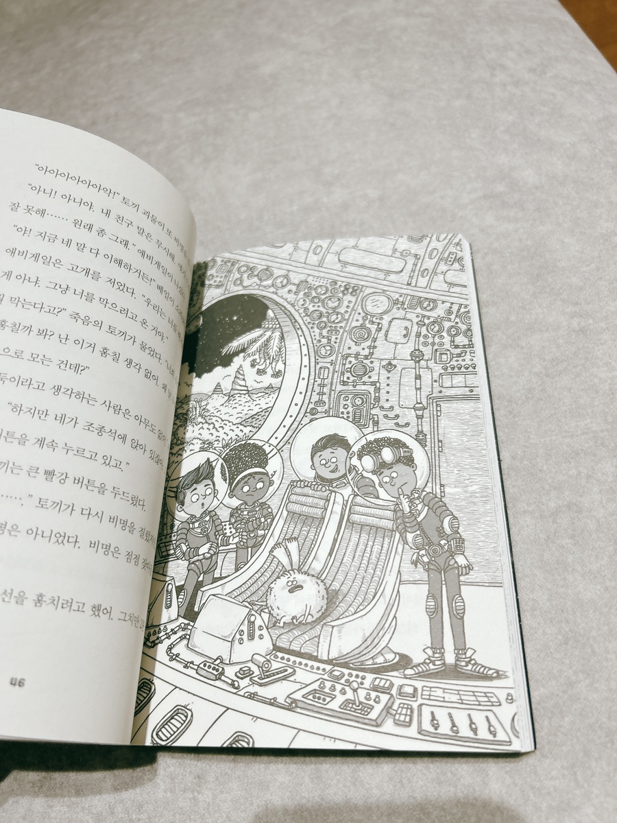 요즘은 글밥이 많은 책들도 푹 빠져들어서 읽고 읽기 때문인지 이 서사원 ▶ 핀 캐스피언의 우주 탐험대 1도 아이의 관심을 끌기에 충분했는데요. 중간중간 재미난 그림도 아이의 관심을 끌기에 충분했어요. 아직 우주는 아이에게 미지의 공간이기에 더욱 그랬던 것 같은데요. 아이는 우주에 대해서 더 많이 알고 이해하고 싶어하더라고요.