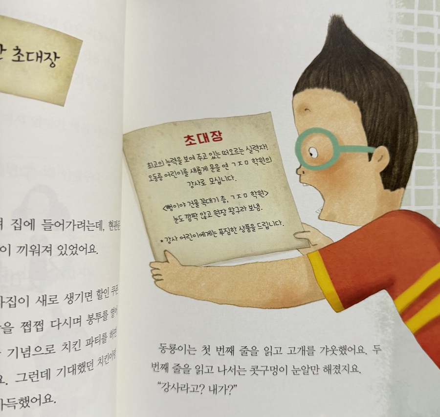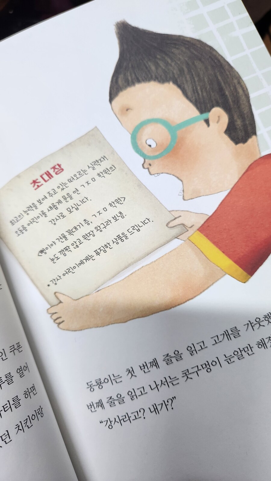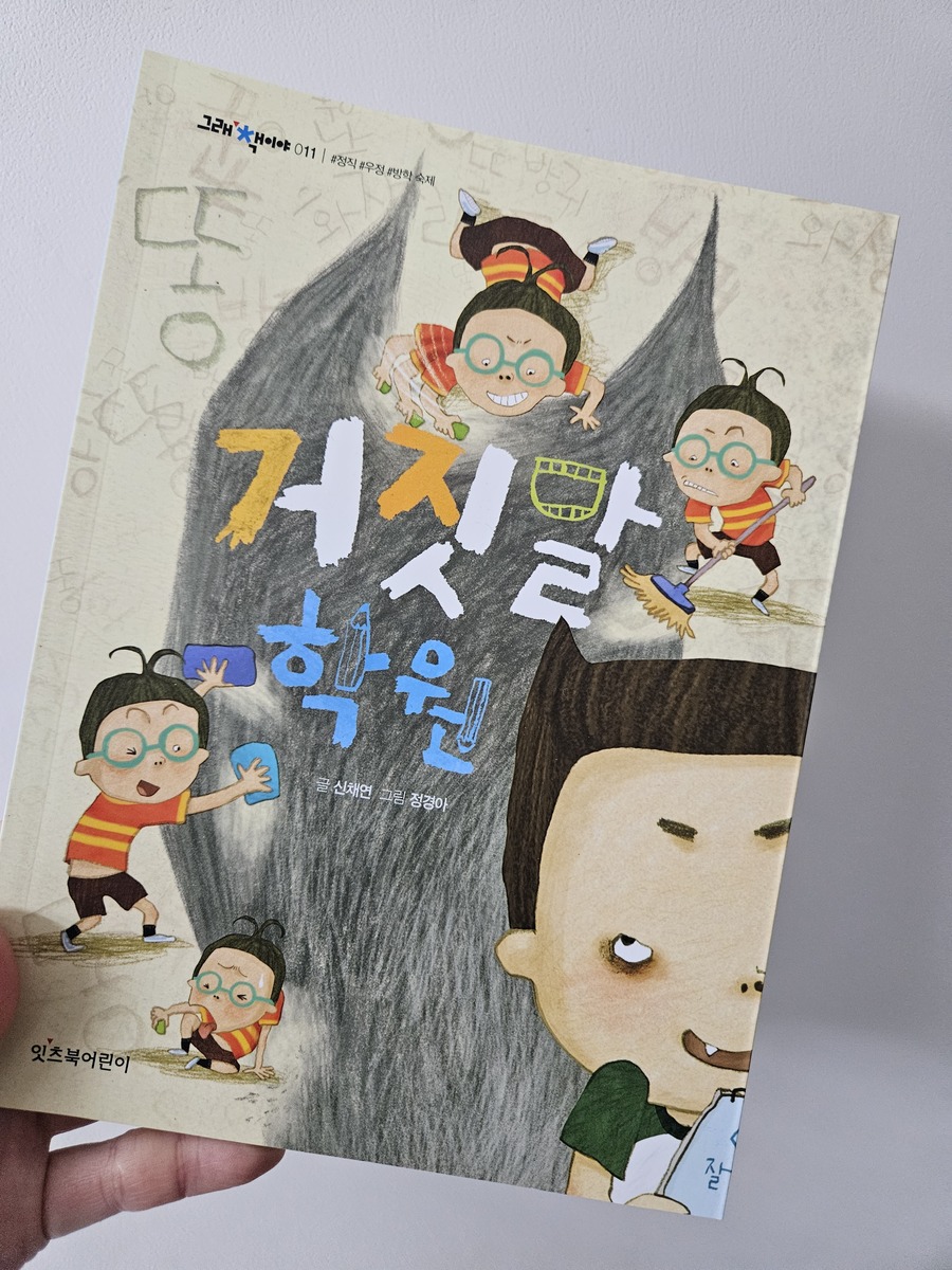 출판사로부터 무상으로 제공받아 주관적인 견해로 서평을 작성하였습니다. 13살의 서평 [거짓말 학원] 안에 있는 주인공은 동룡이다. 그리고 동룡이의 친구인 민두가 나온다. 민두의 별명은 만두. 처음에는 동룡이가 거짓말을 하고 만두가 거짓말을 하지 않았다. 하지만 'ㄱㅈㅁ 학원'인 거짓말 학원에서 다른 사람들도 거짓말을 잘 하도록 만들었다. 이 사건 이후로 일이 터졌다. 그 사람들 중에서 만두도 있었던 것이다. 그래서 만두는 동룡이보다 거짓말을 많이 하고, 더 뻔뻔하게 하도록 바뀌었다. 그래서 나는 ㄱㅈㅁ 학원은 싫고 동룡이가 마지막에 말한 것처럼 '가지마 학원'이 맞는 것 같다. 가면 사람이 통째로 바뀔 수가 있다. 그런 위험은 겪지 않는 편이 낫고, 좋은 선택일 것이다. 만두가 거짓말을 하고 있을 때 즈음 선생님의 탁상시계를 깼다. 그러고 나서 만두는 선생님께 동룡이가 깼다며 거짓말을 하고 동룡이가 범인으로 몰렸다. 그때 만두의 그림자는 모양도, 얼굴도 악마나 다름없는 것만 같았다. 동룡이는 그걸 보고 더욱 겁에 질렸을 수도 있을 것 같다. 동룡이의 잘못이 널리 퍼져버리고 절친인 만두에게 피해를 입혔다. 그것을 보며 거짓말을 정확히 알게 되었다. 하면 다른 사람이든 나든 손해를 무조건 보게 되어있다는 것이다. 11살의 서평 나는 왕구라가 다른 인물인 줄 알았는데 마지막에 선생님이 왕구라의 옷이 보였다. 그래서 선생님이 왕구라로 변신을 한 것 같다. 선생님은 뚱뚱한데 왕구라는 날씬하다. 표지에 무슨 그림인지 몰랐는데 나중에 보니까 변했던 만두였다. 동룡이가 거짓말 학원에서 선생님이 되어 거짓말을 가르쳐 줄 때 수첩으로 얼굴을 가린 학생이 만두처럼 생겼다. 나는 거짓말을 안 할 거다. 왜냐하면 내가 거짓말을 하면 이득이 하나도 없다. 거짓말은 순간의 위기를 모면하게 해주지만, 결국에는 나 자신을 속이는 불편한 행위이다. 나 또한 거짓말을 시작하면 가슴이 콩닥거리고 마음이 불편해지는 것을 느낀다. 이 불편함은 거짓말이 반복될수록 커져만 간다. 우리는 이 불편함을 알면서도 때로는 상황을 모면하기 위해 거짓말을 선택하기도 한다. 하지만 그 불편함이 너무나 싫기에 거짓말을 멀리하게 된다. '거짓말 학원'은 이처럼 거짓말이 가져오는 내면의 불편함과 더 나아가 중요한 것을 잃을 수도 있다는 경각심을 아이들에게 아주 흥미로운 방식으로 전달한다. 이 책은 주인공 동룡이가 겪는 판타지한 경험을 통해 거짓말의 진정한 의미와 대가를 깨닫게 한다. 단순히 거짓말은 나쁘다고 가르치는 것을 넘어, 아이들 스스로 거짓말이 왜 옳지 않은 행동인지, 그리고 그것이 자신과 주변 사람들에게 어떤 영향을 미치는지 생각하게 만든다. 거짓말 학원이라는 신선한 설정과 시간을 되돌리는 쿠폰 등 재미있는 요소들이 아이들의 상상력을 자극하며, 독후 활동으로 제공되는 팝업 초대장 만들기는 책의 내용을 더욱 즐겁게 기억하게 할 것이다. 이 책은 우리 아이들이 솔직함의 가치를 이해하고, 건강한 인성으로 성장하는 데 큰 도움을 줄 것이라고 생각한다. #거짓말학원 #잇츠북어린이 #잇츠북어린이출판사 #서평단 #서평 #신채연글 #정경아그림 #그래책이야 #잇츠맘4기 #꾸민이아빠해마 #다시읽는잇츠북 #잇츠북리북 #정직 #우정 #방학숙제 |
