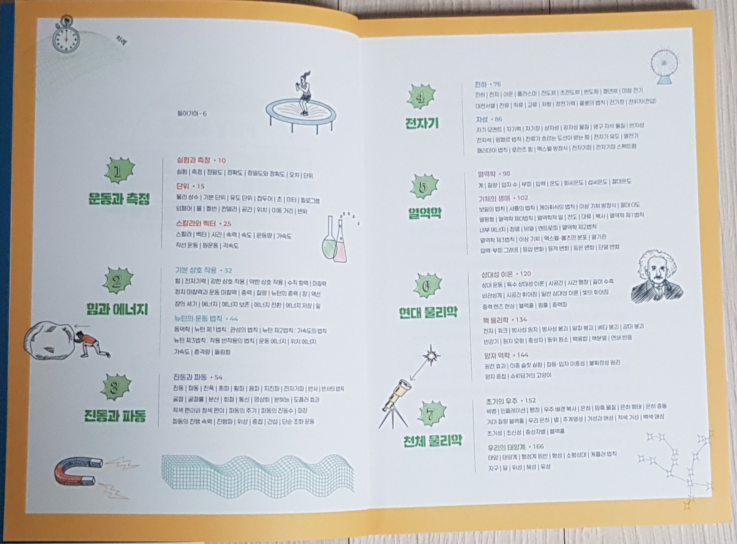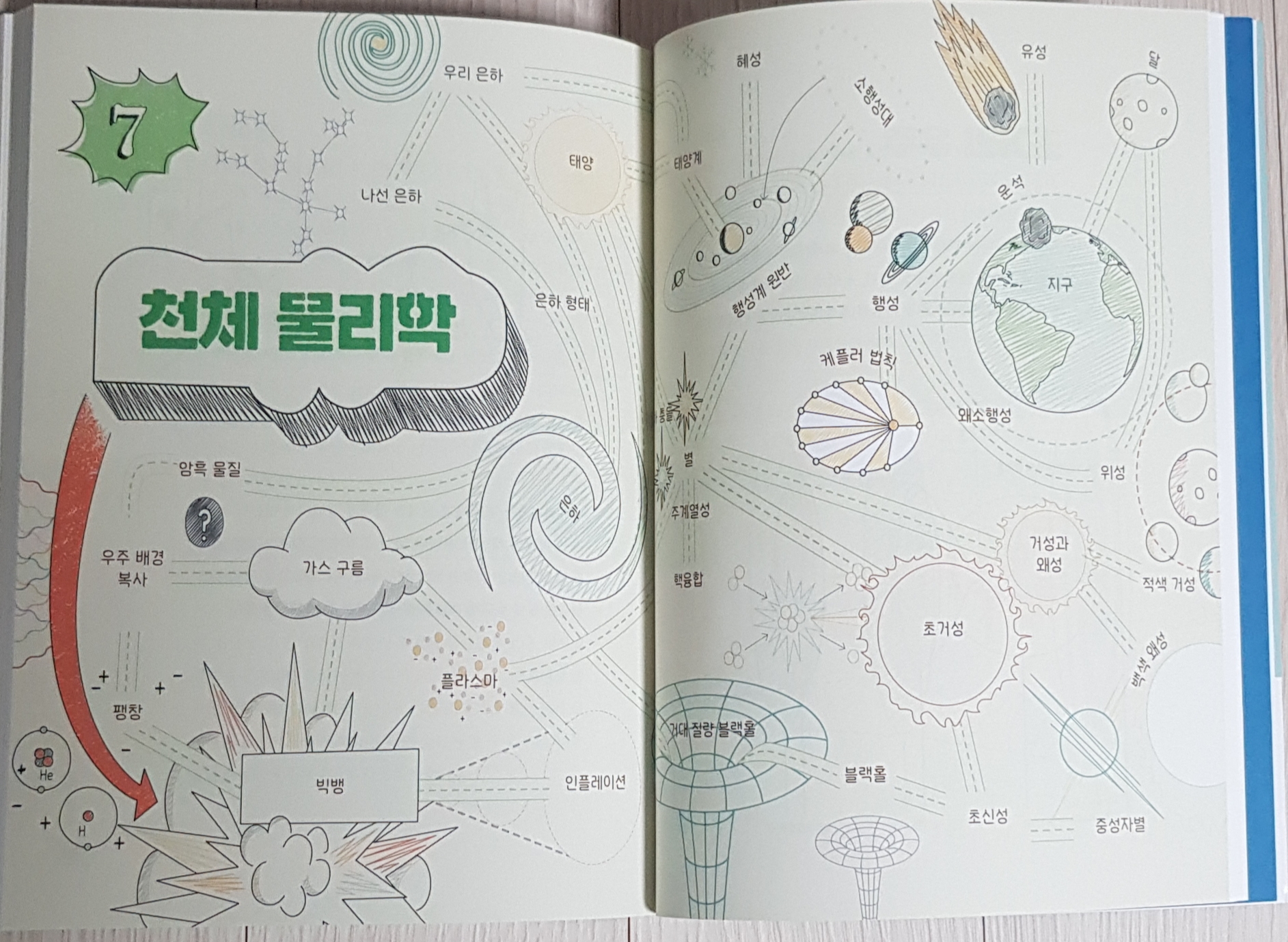 ![]() 《마인드맵 물리학》 운동과 측정, 힘과 에너지, 진동과 파동, 전자기, 열역학, 현대 물리학, 천체 물리학이라는 7가지 주제로 각 주제에 포함되는 핵심 용어를 사전 형식으로 정리한 부문이 평소 물리학에 관심을 가지고 있는 아들에게 개념을 한 번씩 정리하며 읽을 수 있어 좋았다는 피드백을 받았는데요 평소 궁금했던 개념들이 주제별로 정리가 되어 있어 찾기도 쉬울 뿐 아니라 모르는 용어를 찾아보는 재미도 있었다 하더라고요 특히 개념들을 그림으로 설명해 주는 부분들은 이해를 돕기 충분했는데요 이해를 도움과 동시 요 개념들이 서로 어떤 관계가 있는지