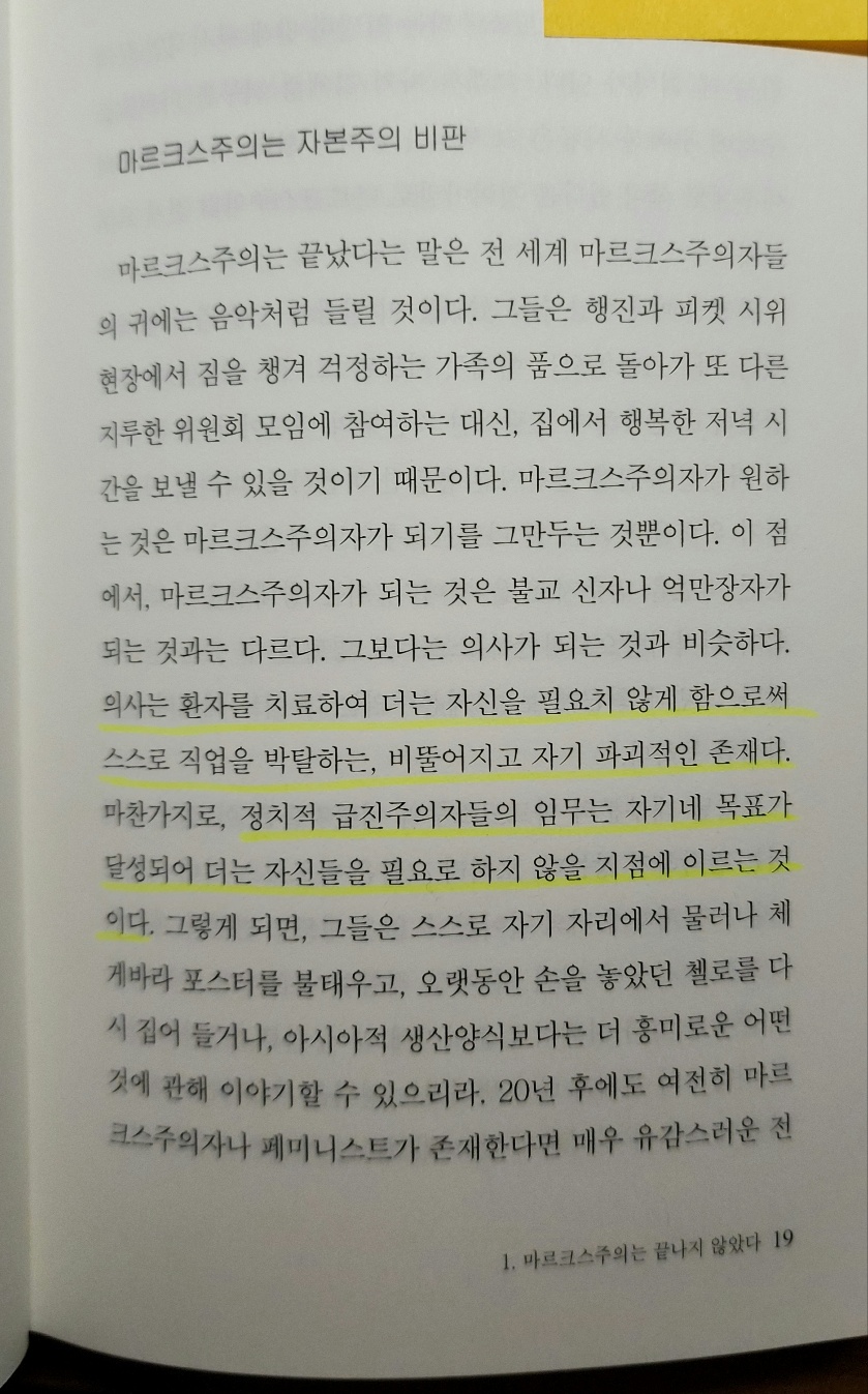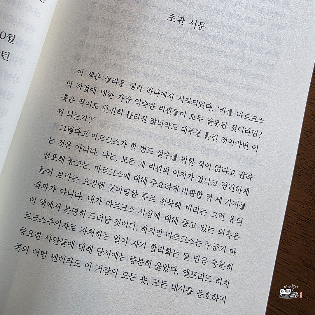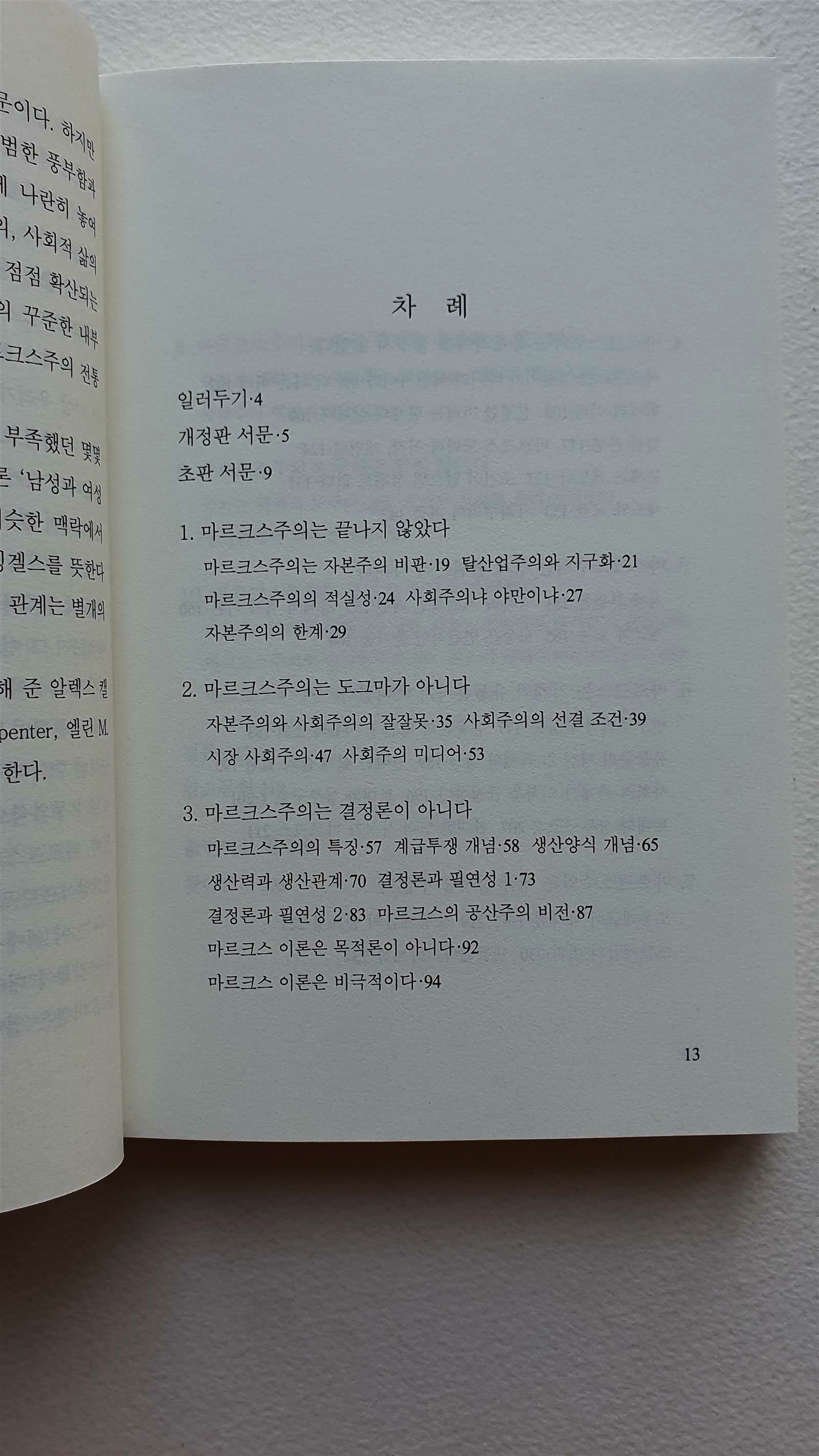 우파 포퓰리즘이 한국 사회를 멍들게 하고 있는 지금 이 서문의 문장들이 너무도 와닿았다. 자본주의를 경제학적으로만 보는 것이 아니라 사회현상적으로 이해하는데에도 마르크스 사상이 이렇게 필요한 거였다니 다시금 놀랍기도 했고. 여하튼, 개정판의 서문은 이 책이 왜 2025년 지금도 유효하게 읽힐 수 있는지를 깨닫게 해주었다면 처음 이 책을 발간하며 저자가 쓴 서문에선 이 책의 탄생배경을 확인할 수 있다.
