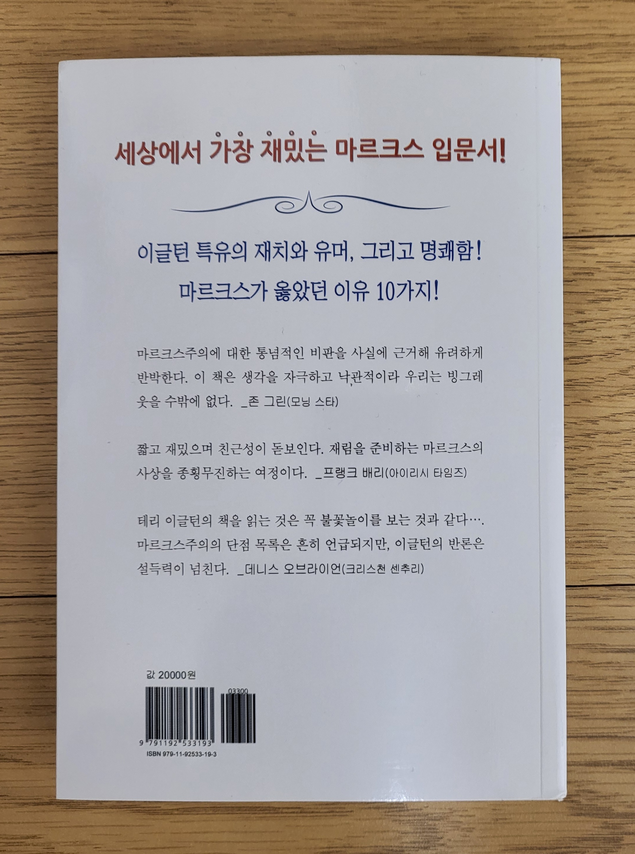 《마르크스가 옳았던 이유》는 마르크스 사상을 단순한 이념이 아니라 현대 사회의 문제를 분석하고 해결하는 데 유효한 철학으로 조명하며, 그가 오늘날에도 의미 있는 사상가임을 일깨우는 책이다. ![]() ![]() ![]()