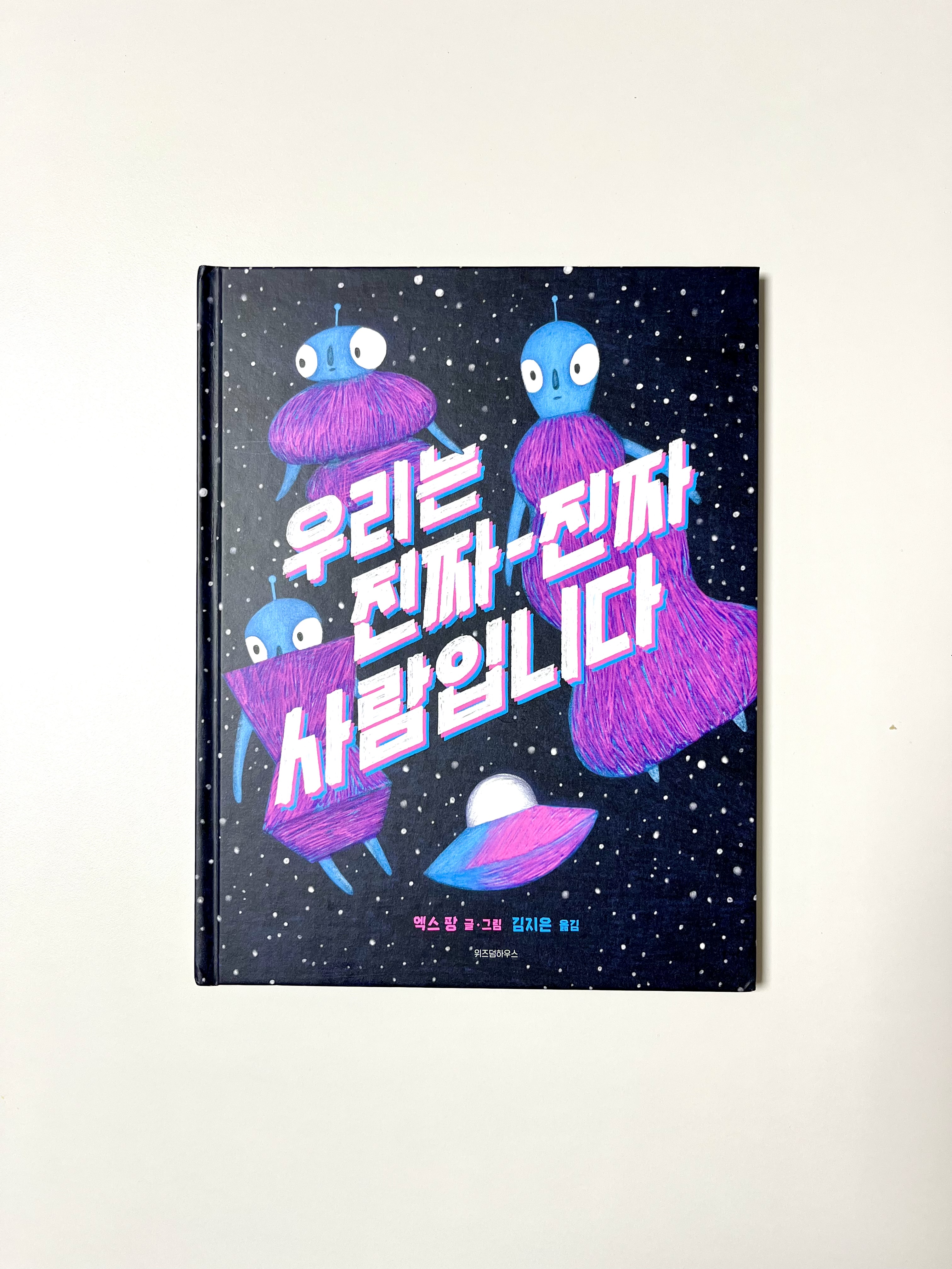 우리는 진짜 진짜 사람입니다. 엑스팡 글그림/ 김지은 옮김 위즈덤 하우스 <우리는 진짜 진짜 사람입니다.> 제목이 참 재밌어요. 진짜예요! 진짜라니까요! 강조하는 듯한 제목. 원서 제목이 궁금해서 찾아보니 <We are definifely human>이네요. 옮기신 분이 번역을 참 맛깔나게 하신 것 같아요. 25년 2월 에즈라 잭 키츠 상을 수상한 책입니다. :)