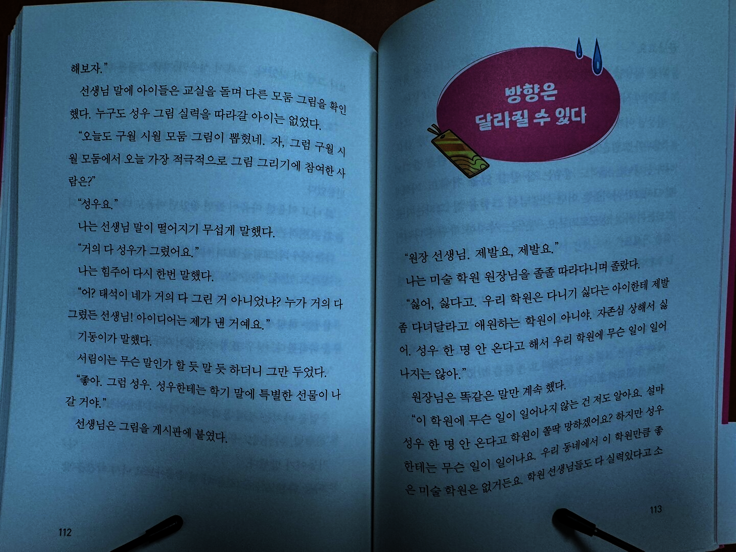 오해와 소문 사이에서 진짜를 밝히며 성장하는 아이들 이야기 아이들이 돌아온 학교 박현숙 작가의 신작 '아이들이 돌아온 학교' 제목을 접하는 순간 너무 기대되었어요. 박현숙 작가 이름 만으로도 믿고 읽는 책이기 때문이죠. 구드레곤, 구미호 식당, 수상한 시리즈 등 저희 아이들이 모두 좋아하는 책들이거든요. 간만에 나온 신작이라 안 볼 수가 없어 얼른 읽어보았어요. [차례]만 읽어봐도 아이들간에 갈등 요소가 얽혀있어 점점 커질 것 같은 느낌이 들어요. 과연 아이들이 돌아온 학교는 어떤 이야기를 담고 있을까요? 지난 주 금요일에 전학 온 성우는 말도 하지 않으며 친구들과 어울리지도 않고 혼자서 행동해요. 선생님이 수업시간이라 일으켜 세워도 다시 엎드릴 정도로 학교에서 하루 종일 책상에 엎드려 있는데 오직 미술 수업 시간에만 일어나서 그림을 그리는 매우 이상한 아이였지요. 어느 날 등굣길에 성우가 성우 엄마랑 실랑이를 벌이다가 금으로 만든 책갈피 같은 걸 바닥에 떨어뜨린 것을 보고 서림이가 줍게 돼요. 하지만 전날 성우와 다퉜던 서림이는 성우에게 직접 돌려주고 싶지 않았고 서림이는 태석이에게 대신 전해 주라고 했지만 태석이 또한 거부하여 하는 수 없이 서림이가 봉투에 싸서 성우 몰래 성우 책상에 넣어 두었어요. 이를 지켜 본 민소영이 서림이가 성우에게 주는 '고백 편지'로 오해하여 한 말이 삽시간에 서림이가 성우를 좋아한다고, 하지만 성우에게 차였다는 소문이 반 전체에 퍼지게 돼요. 이 사건의 목격자이자 증인인 태석이가 소문이 잘못된 것이라고 말해보지만 아무도 이를 믿는 아이들은 없었어요. 친구들이 서림이가 성우를 좋아하는 말을 알려준 직후 성우가 화를 내며 자기 스타일 아니라며 집어던진 그 금으로 만든 것 같은 책갈피를 찾기만 하면 오해를 풀 수 있을 것 같은데 성우가 던진 사물함 쪽으로 아무리 찾아봐도 찾을 수 없게 돼요.