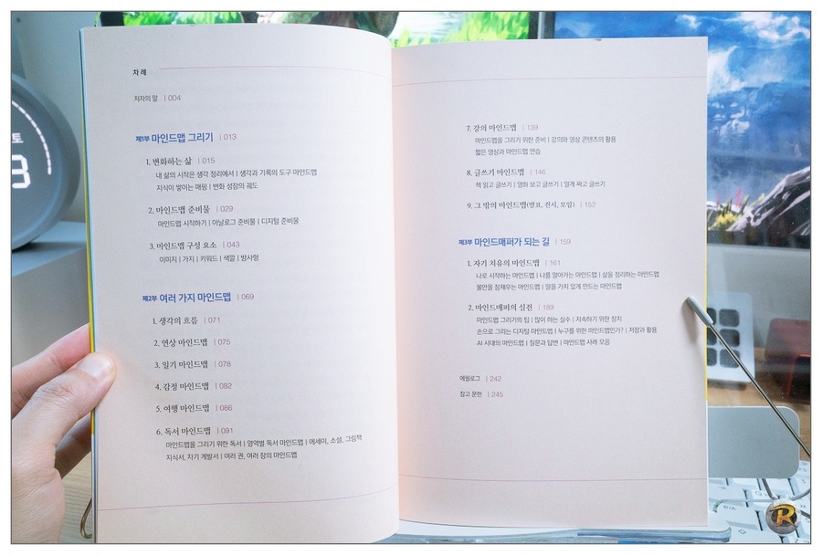 최근 들어 책을 읽을 때 마인드맵을 함께 사용하려고 노력하고 있다. 마음으로는 핵심 내용을 기재하며 하나의 페이지로 작성을 하고 싶지만, 실제로는 세부 내용을 따라 적는 등의 문제가 발생하고 있다. 이러한 부분을 고쳐보고자 이 책을 선택했으며, 한장으로 정리할 수 있는 마인드맵을 만드는데 도움을 받고자 이 책을 구입하게 되었다. 일단 이 책은 페이지수가 그렇게 많지 않고, 훑어보다 보면 마인드 맵의 실례가 많이 있는 것을 알 수 있다. 많은 샘플이 있어 어떻게 마인드맵을 구성하면 될지에 대한 힌트가 책의 구석구석 있으며, 비교적 가벼운 마음으로 읽어도 괜찮을 것 같은 느낌도 든다. 책의 초반부에는 마인드맵을 위한 준비물과 구성요소에 대하여 소개를 하며, 생각과 기록의 도구인 마인드맵을 통해 생각하는 방법과 사고방식의 유연화 등 효과에 대하여 소개를 하고 있다. 2부에서는 여러 가지 마인드맵을 소개하고 있는데, 이렇게 다양하게 활용을 할 수 있을 것이라고는 이 책을 읽기 전 생각도 하지 못했다. 일반적으로는 지식이나 자기 계발 관련된 도서에 활용하는 것이 대부분이라고 생각을 했는데, 그 보다는 광범위하게 여러 가지 종류의 책을 읽을 때 활용을 할 수 있다는 것을 알 수 있었다. 그리고, 글쓰기나 발표, 전시회 관련된 샘플도 볼 수 있었다. 생각의 자유로운 확장과 명확하게 정리를 하는데 도움을 주는 마인드맵의 특성을 생각해보면, 나의 생각이 너무 짧았구나 하는 생각도 들었다. 3부에서는 마인드매퍼가 되는 방법에 대하여 소개를 하고 있는데, 나를 알고 발전시킬 수 있는 도구로서 설명하는 부분이 인상 깊었다. 나를 이해하기 위한 도구로서 마인드맵을 활용할 수 있으며, 과거-현재-미래로 이어지는 자 자신의 변화된 모습을 돌아볼 수 있다는 것도 알 수 있었다. 좁은 생각이기는 했지만, 그 동안 무언가를 마인드맵으로 정리를 해야겠다고 생각할 때는 하나의 마인드맵을 이용하는 것만 떠올렸지만, 이 책을 읽으면서 짧더라도 여러 개의 마인드맵을 만들 수 있거나, 하나로 합치는 것도 가능하다는 것을 배울 수 있었다. 마인드맵을 활용하는 다양한 방법을 소개하고 있으며, 어떻게 구성해야 하는지 실제 많은 예시를 보여주고 있어 앞으로 활용하는데 도움이 될 것으로 생각한다. 아직 초보 수준에 머무르고 있기는 하지만, 작년 말 정도부터 책을 읽으면서 노션과 마인드맵을 함께 사용하려고 노력을 하고 있다. 이 책에도 그러한 부분에 대한 설명이 있으며, 시간은 조금 더 걸리지만 이러한 노력이 나쁘지는 않다는 것을 알게 되었다. 책에서 다른 여러 마인드맵 관련 도서에 대하여 소개하고 있으며, 그러한 책들도 함께 읽는다면, 저자가 독자에게 알려주고 싶은 내용에 대하여 더 깊게 이해를 할 수 있지 않을까 하는 생각도 하게 되었다. 비교적 얇은 책이지만 충실한 내용과 함께 실제 마인드맵 그리기 적용에 많은 도움이 될 것으로 본다. |