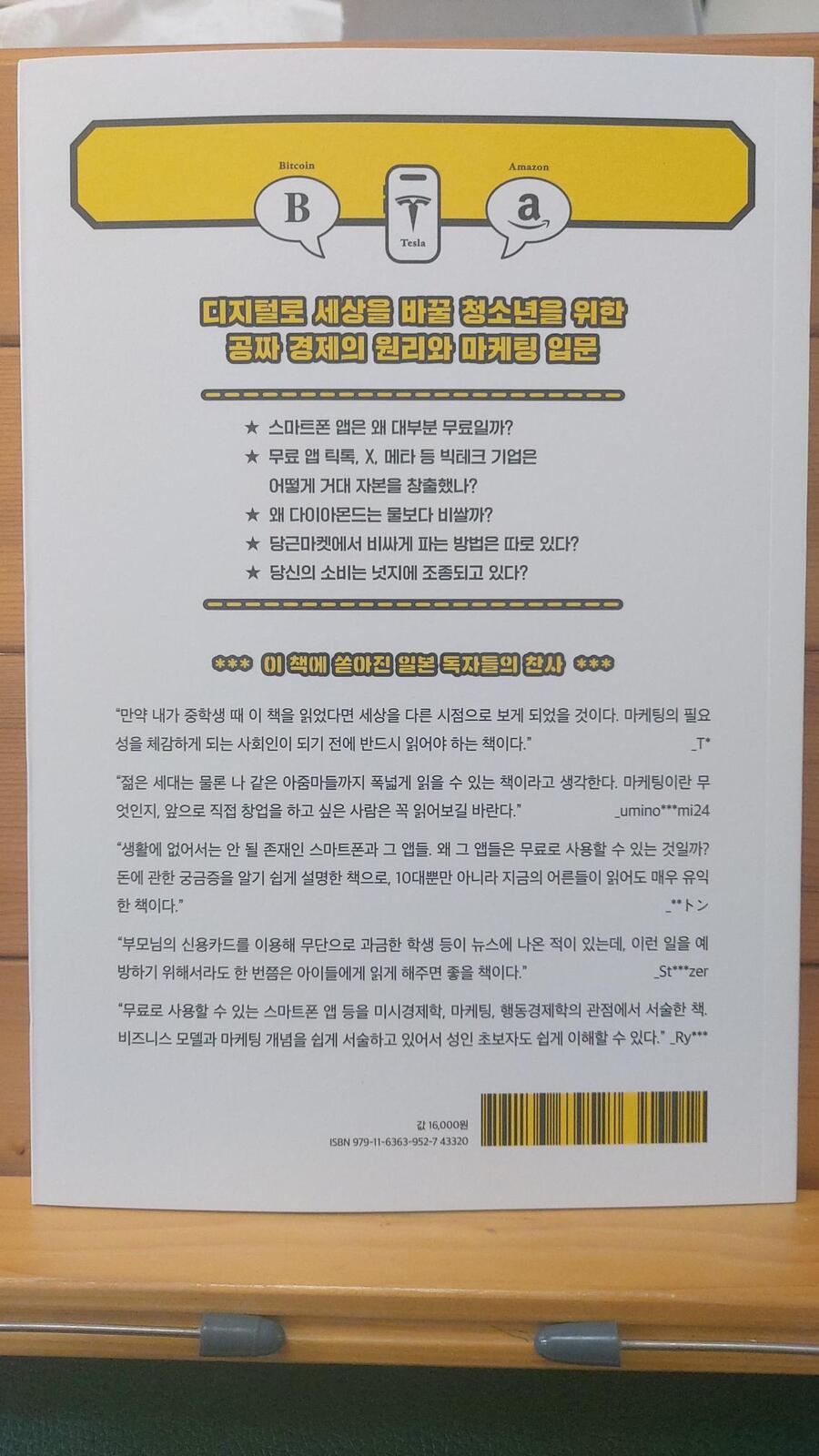 책의 후반부에서는 “학생들에게도 마케팅 지식이 왜 필요한가”라는 주제를 다룬다. 단순히 소비자로 머무는 것이 아니라, 앞으로는 콘텐츠 생산자나 창업가로서 경제를 주도하게 될 이들에게 꼭 필요한 시선이라는 것이다. 고등학생 자녀들과 함께 이 주제를 놓고 잠시 이야기를 나누며 저도 많이 알아가는 시간이었어요. 『10대를 위한 공짜 경제학』은 경제라는 주제에 첫발을 내딛는 학생들에게는 물론, 자녀와 경제 이야기를 나누고 싶은 부모에게도 권할 만한 책이다. 한 장 한 장을 넘기며 세상 보는 눈이 조금 더 넓어지는 기분을 함께 느껴보는 시간이 될 것 같아요. #10대를위한공짜경제학 #경제입문서 #청소년추천도서 #경제와마케팅 #고등학생필독서 #부모자녀대화 #수요와공급 #가격탄력성 #리셀문화 #디지털경제 #경제교육 #책추천 #자녀와함께읽는책 #동아엠앤비 |