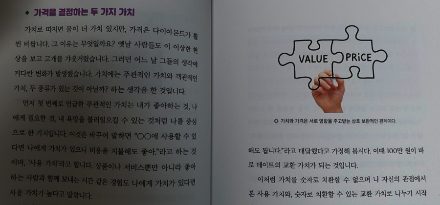 가치와 가격이 결정되는 과정을 배우는 것으로도 나중에 투자활동에 임할 경우에 큰 도움이 되리라 생각합니다. 가치와 가격이 항상 일치하는 것은 아니며 정비례하지도 않다는 것을 말입니다. 정해지지 않고 상대적인 것들을 수치화하는 과정에서 경제적 인간이 되고 거기에서 여러 가지 기회가 파생된다고 생각합니다.