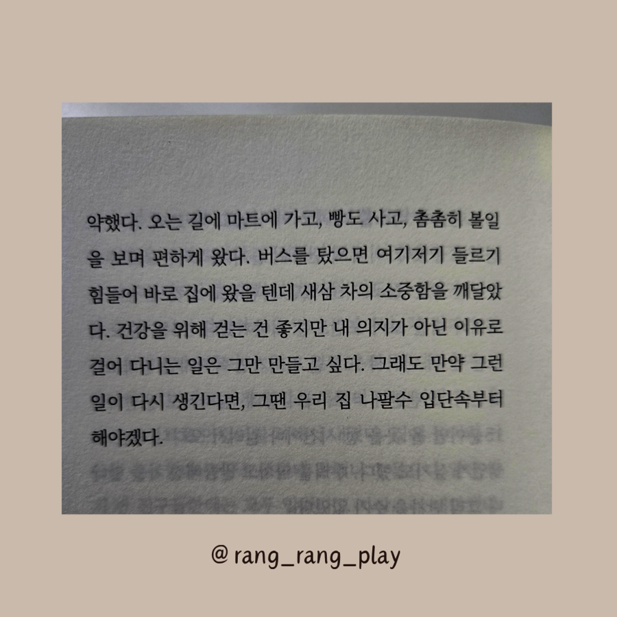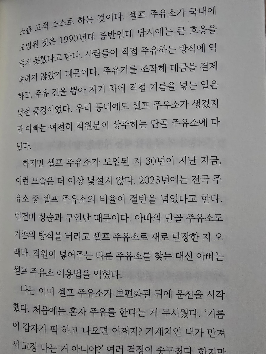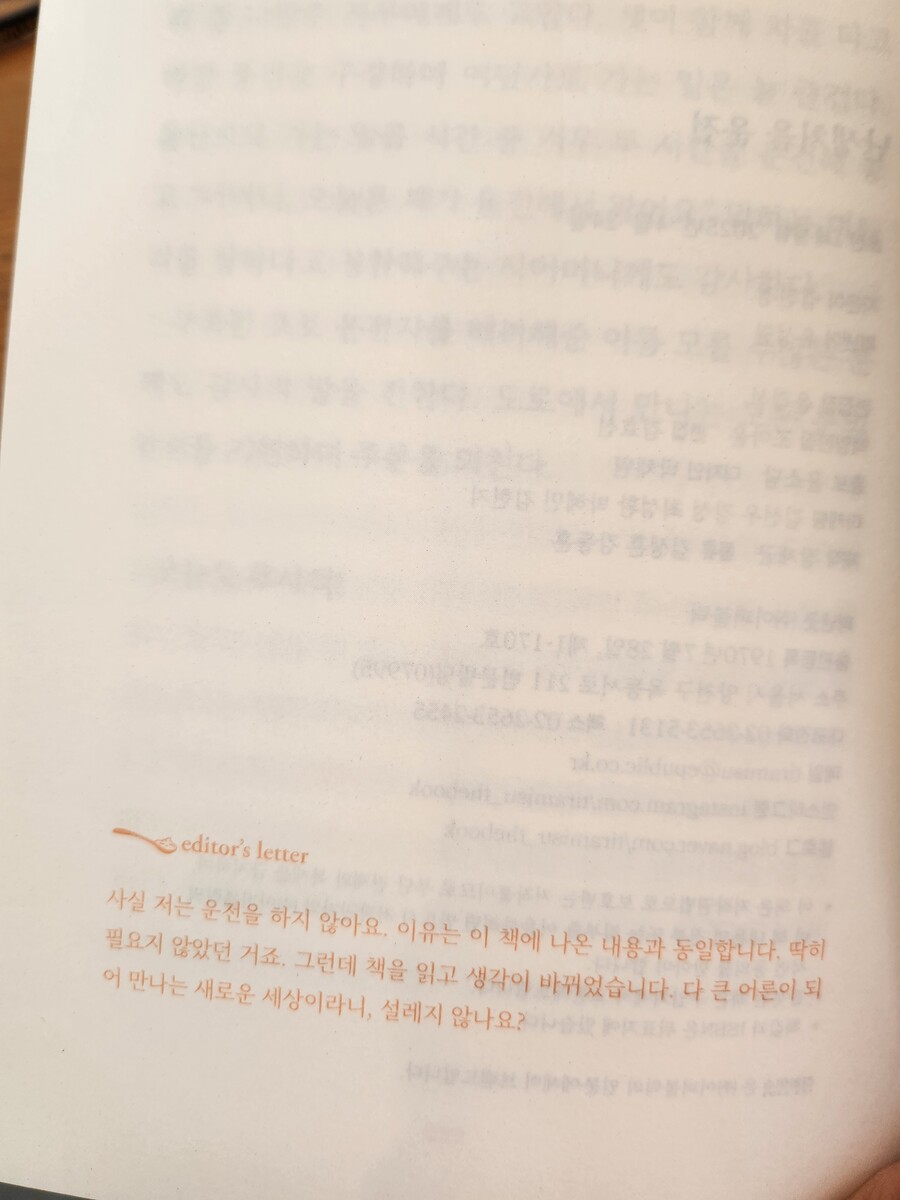 난생 처음 운전 ★처음에는 혼자 주유를 한다는 게 무서웠다. “기름이 갑자기 퍽 하고 나오면 어쩌지? 기계치인 내가 만져서 고장 나는 거 아니야? 여러 걱정이 솟구쳤다. ★보행자로 다닐 때 무방비 상태에서 들은 경적은 소리가 너무 커서 귀가 아팠다. 반면 차 안에서 듣는 경적은 “지금 나한테 한 건가? 싶게 작게 들렸다. 그 당시 나는 앞만 보고 가기에도 바쁜 인생이었다. 어쩌면 경적보다 내 심장 소리가 더 커서 못 들은 걸 수도 있고. ★ 출발해 친정으로 올 때 물을 챙겼으나 생수통을 뚜껑도 열지 않고 음료 자리에 꽂아놓은 까닭에 두 시간 넘게 갈증에 허덕였다. 100킬로로 달리는 고속도로에서 뚜껑을 딸 여유가 어디 있겠는가. ★오랫동안 품고 있던 걱정 하나가 떠올랐다. “우리 가족 셋 중 남편이 아프면 어떻게 하지”라는 생각이다. ★다 같이 약속을 지켜야 안전을 보장받을 수 있다. 비싼 과태료를 내고 후회하기보다 미리미리 조심할 일이다. ★아빠가 봉고차를 몰던 시절에는 동네 이웃이나 부모님의 친구 가족과 산으로 들로 자주 다녔다. ★먼 훗날이 되면 우리가 오늘 간 곳이 어디인지 장소는 기억나지 않을 수 있다. 그래도 차 안의 달뜬 분위기와 눈 쌓인 바깥 풍경, 얼음 위를 뒹굴고 친구와 나란히 앉아 재잘대던 시간은 남아 있을 것이다. 생활환경이 달라지면서 어쩔 수 없이 “운전”을 하게 된 이야기. 대중교통이 발달 된 서울에서는 운전일 하지 못해도 큰 불편함이 없지만, 그렇지 못한 곳은 아무래도 불편함이 크다! 그래서 운전을 하게 된 이야기. 읽으면서 내 이야기 같았다. 나도 운전을 하고 싶어서 면허를 따고, 어디든 갈 수 있다는 마음으로 주위의 걱정은 아랑곳 하지 않고 운전대를 잡았다. 그러나 막상 도로로 나가보니 이게 뭐야.. 정말 5분이면 갈 아이 병원을 나는 10분 넘게… 뒤에서는 빵빵 거리고 옆에 앉아 있는 신랑의 속사포같은 잔소리는 내 정신을 점점 더 안드로메다로 보냈다. 5분의 운전이었지만 남은 건 내 손과 겨드랑이의 흥건한 땀! 그리고 남편과의 틀어진 감정뿐이었다. 이렇게 내가 면허를 따고 초보였을 때. 그리고 운전을 하면서 갖게 되는 생각들 아직 내가 베스트 드라이버도 아닌데 운전용 신발을 따로 구매를 하려고 알아보던 일. 팔 토시를 사려고 알아보던 때. 그때의 일들이 막 스쳐지나갔다. 그리고 내가 운전대를 잡아보니 운전자의 마음을 그나마 조금은 이해할 수 있었다 조수석에서 앉아서 승차자의 시선이 아니라 운전자의 시선으로! 차를 운전한다는 것은 단순히 내가 운전! 차로 어디를 가야지! 편하게 갈 수 있다는 이동수단만의 개념은 아닌 것 같다. 운전대를 잡는 순간 내가 어디로 가던지 내가 누구와 가던지 그 시간에는 희로애락이 다 녹아 들어 있다고 생각한다. 가족과의 추억도 어린시절 부모님과의 추억도 기억도 모두다 말이다. 나는 아직 운전이 무섭다! 대중교통이 아무래도 나에게는 익숙하지만 운전을 하면 삶의 질이 향상 된다는 것도 알고 있지만 아직은 아직은 나에게 운전은 너무나도 어렵다!!!!! 내가 처음 운전대를 잡았을 때, 내가 처음 아빠차를 탔을 때, 내가 처음 아이들을 카시트에 태우고 여행갔을 때 이런 모든 것들이 책을 읽으면서 주마등처럼 스쳐지나갔다. 작가님의 운전 에피소드를 읽었지만 그와 동시에 나는 작가님의 운전대에 함께 동승해서 나의 추억여행을 떠난 기분이었다. 오늘도 베스트 드라이버를 마음 속에 꿈꾸는 내가!! *이 글은 출판사로부터 도서지원받고 작성한 개인적인 글 입니다* |