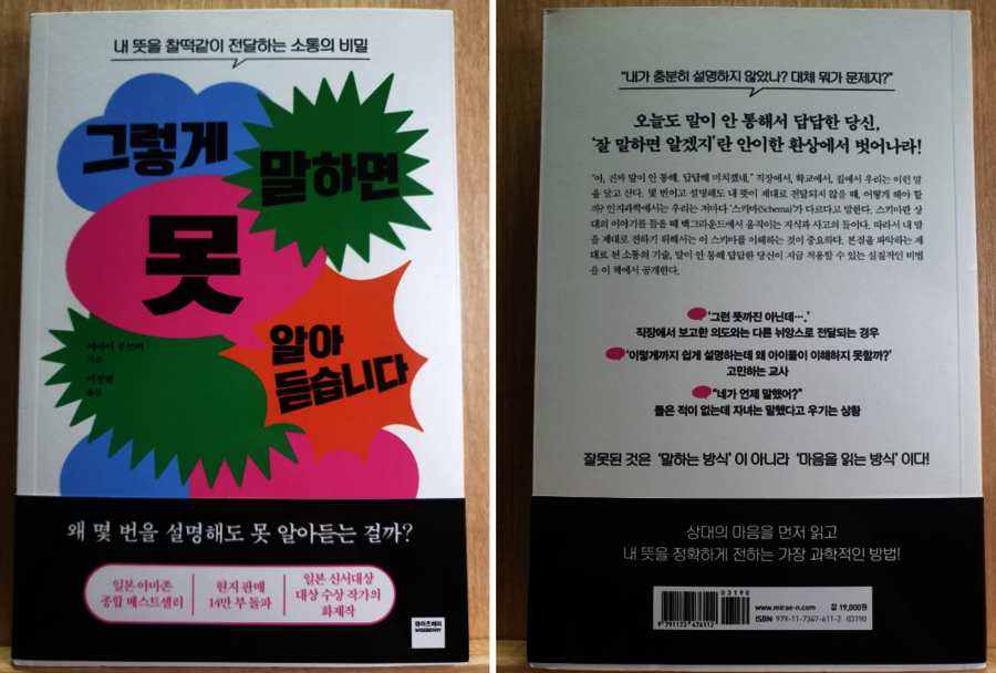 * 무상으로 제공받아 작성된 후기임을 밝힙니다. 요즘 대화나 화법. 그리고 상대방과 소통하는 좋은 지식이 담긴 책들이 많이 출간되고 있는데요. 이번에 읽어본 도서 그렇게 말하면 못 알아듣습니다. 의사소통에 관련된 좋은 내용이 많이 담겨있습니다. 흔히, 우리가 말을 잘한다 혹은 말수단이나 말주변이 좋다는 말을 할때는 상대방을 배제하고, 말하는 스스로가 잘하거나 그 사람이 무수하게 많은 말을 내뱉는 것을 일컬어 말하고는 하는데요! 책에서는 그렇게 일방적인 말하기의 전달방식에 초점을 맞추기 보다는 상대방의 입장에서 말하기에 중점과 초점을 맞추고 있습니다. 즉, 내가 아무리 말을 잘하고 전달하고자 하는 지식이나 소통의 컨텐츠들이 많다해도 상대방이 받아들일수 없거나 상대방의 지식이나 상황들을 배려하지 않는다면 이것은 올바르게 말하는 방식이 아니란걸 말해주고 있습니다. 상대방의 입장에서 어떻게 받아들이는지 먼저 생각하고 말하기를 시작해야 한다는 것입니다. 실전에서도 사회나 직장, 학교 등에서도 자신의 말만 늘어놓고, 남이 듣는거는 별로 관심이 없는 사람들이 은근히 많고, 원만한 소통이나 대화가 안되는 이유는 바로 이와같은 상황임을 알 수 있습니다. 요즘 스마트폰과 AI같은 대면 소통의 시대에서 멀어짐에 따라 정확한 내 감정을 상대방에게 전달하기 어려움 상황이고 공감이란 것이 왜곡되기 쉽습니다.