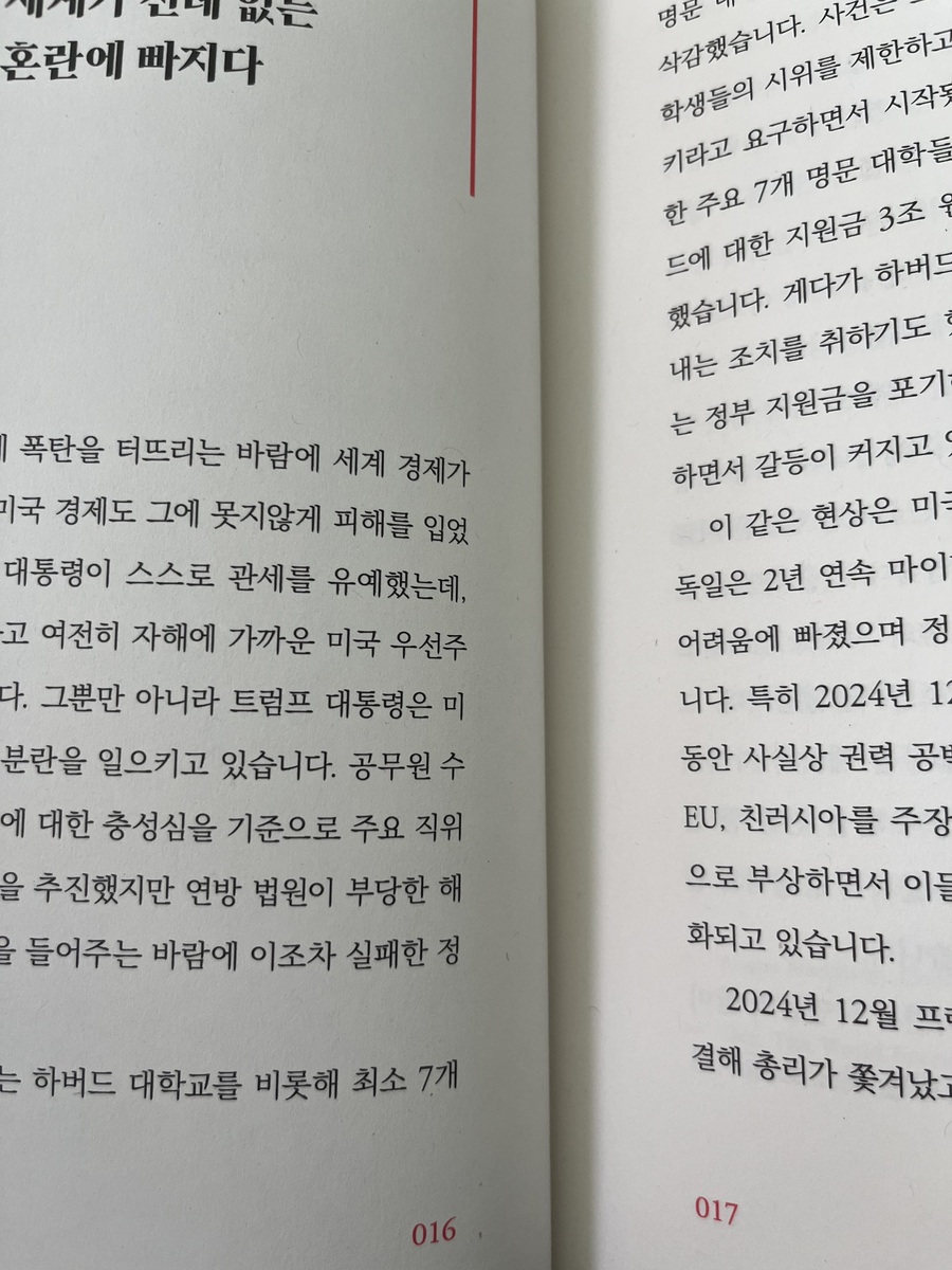 책과 담 쌓고 살았는데 트럼프 2.0 시대를 너무 재밌게 읽고 나서 박종훈님이 쓰신 책이라는 걸 알고 세계경제 지각변동도 망설임 없이 바로 샀어요 미리보기도 제대로 안보고 구매했는데 너무 잘 읽히고 재밌어서 순식간에 다 읽었어요. 책만 읽으려 하면 책상 치워야 하고 갑자기 배도 고프고 집중도 잘 못 하는 성격인데 이 책은 정말 예외였어요 세계 경제에 이렇게 관심 생기게 될 줄은 몰랐네요