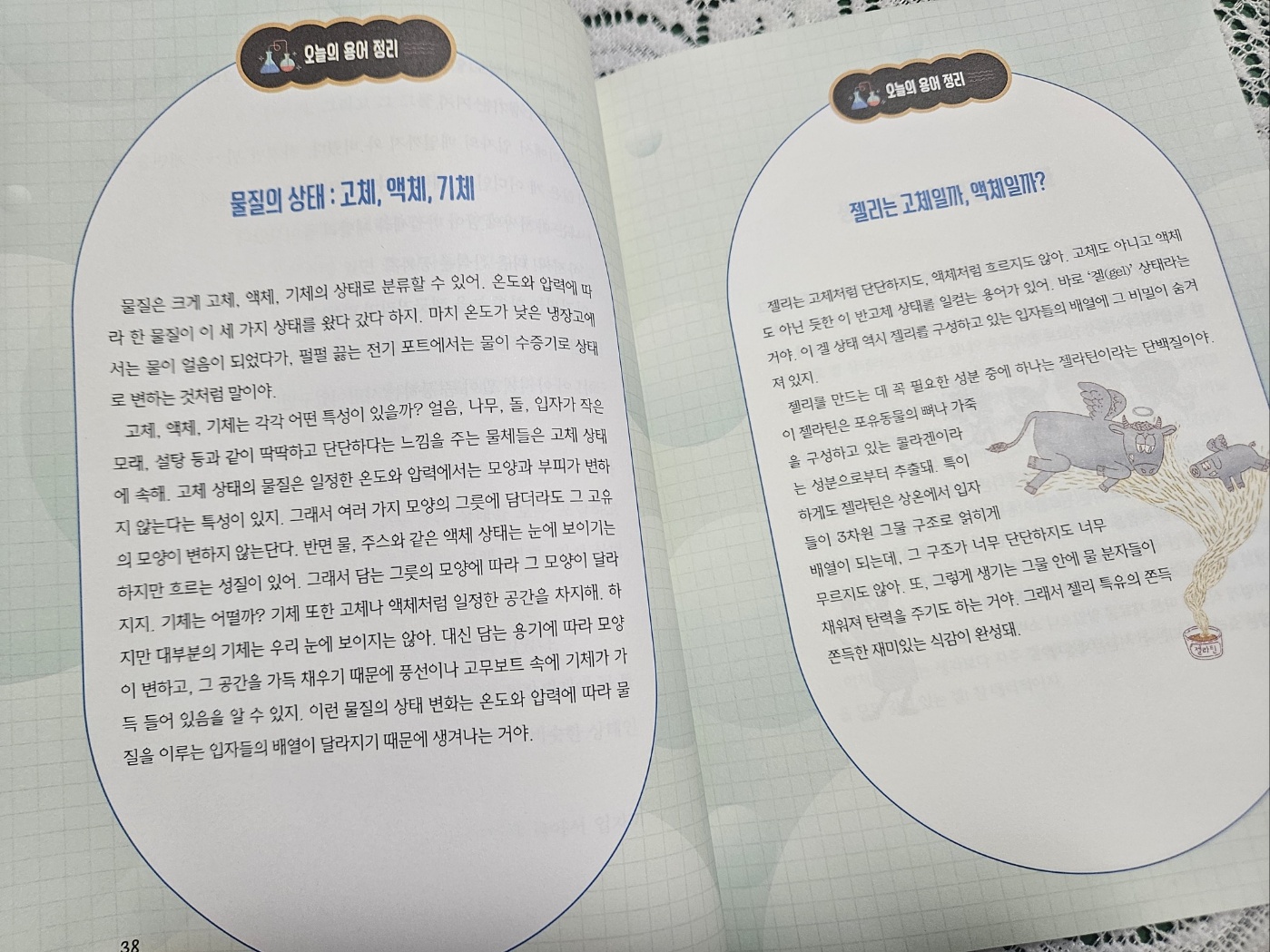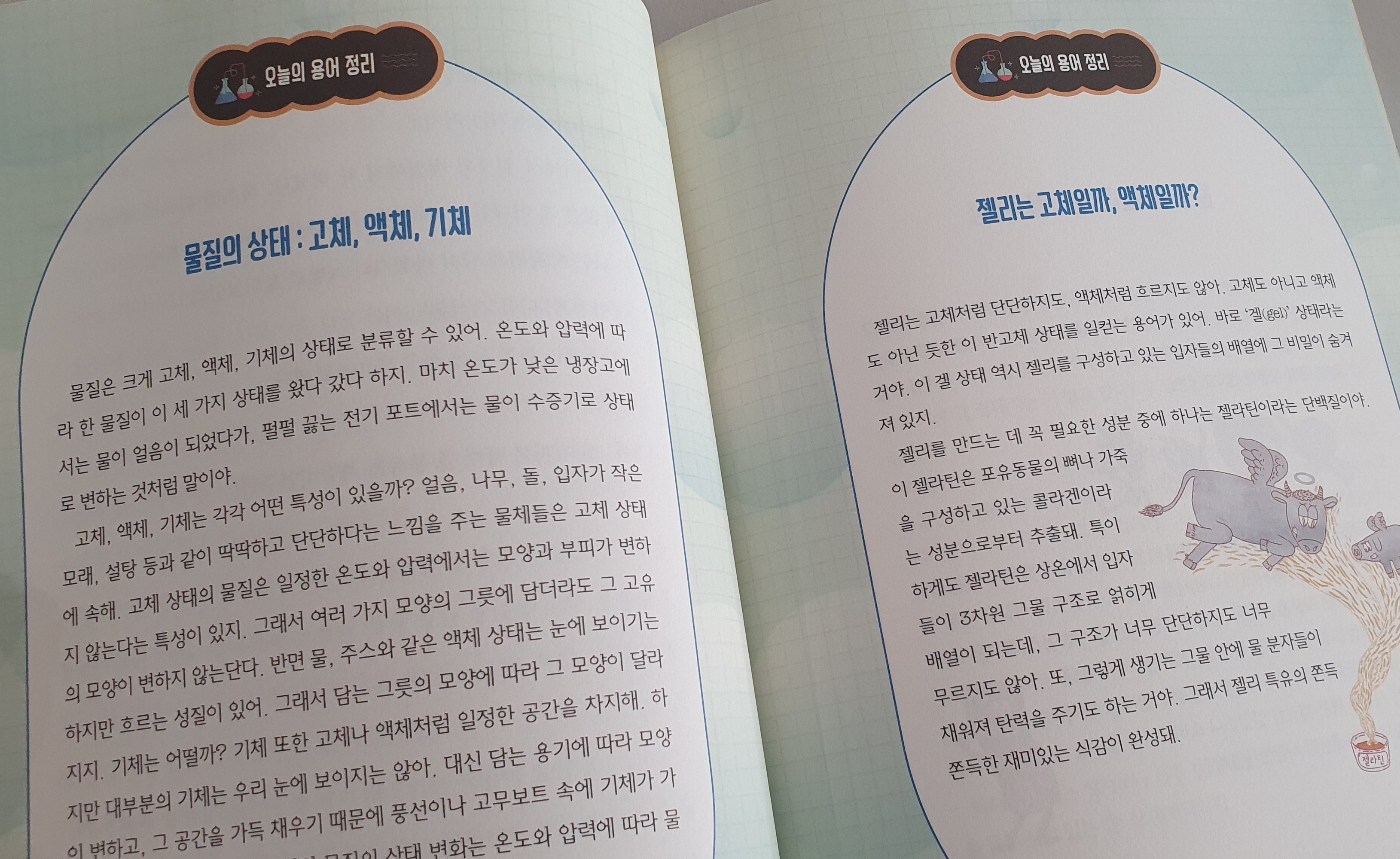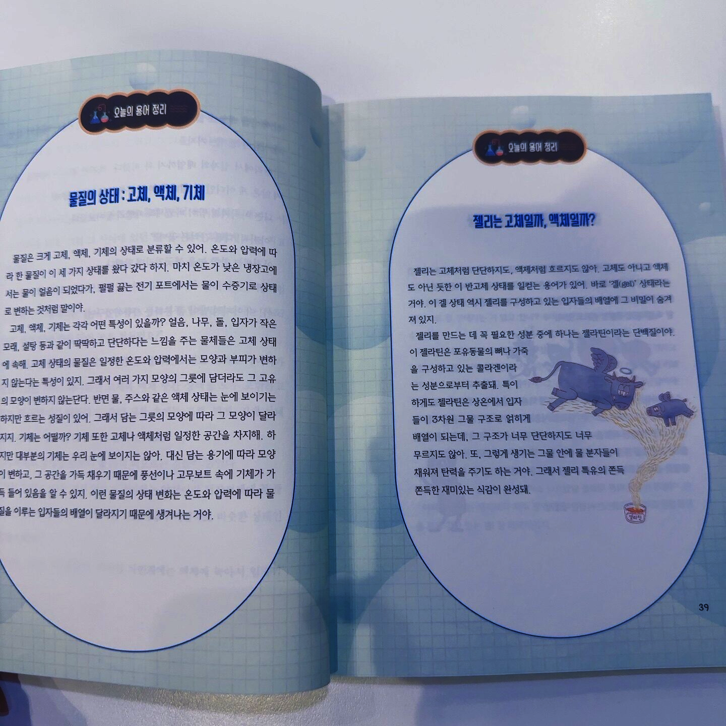 그리고 배경지식을 쌓을 수 있도록 오늘의 용어 정리,생활 속 과학 돋보기, 역사 속 과학 돋보기, 정보 TMI의 코너가 추가로 마련되어 아이들이 스토리와 함께 화학 지식을 좀 더 깊고 폭넓게 배워 볼수도 있어요.