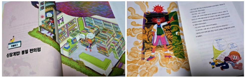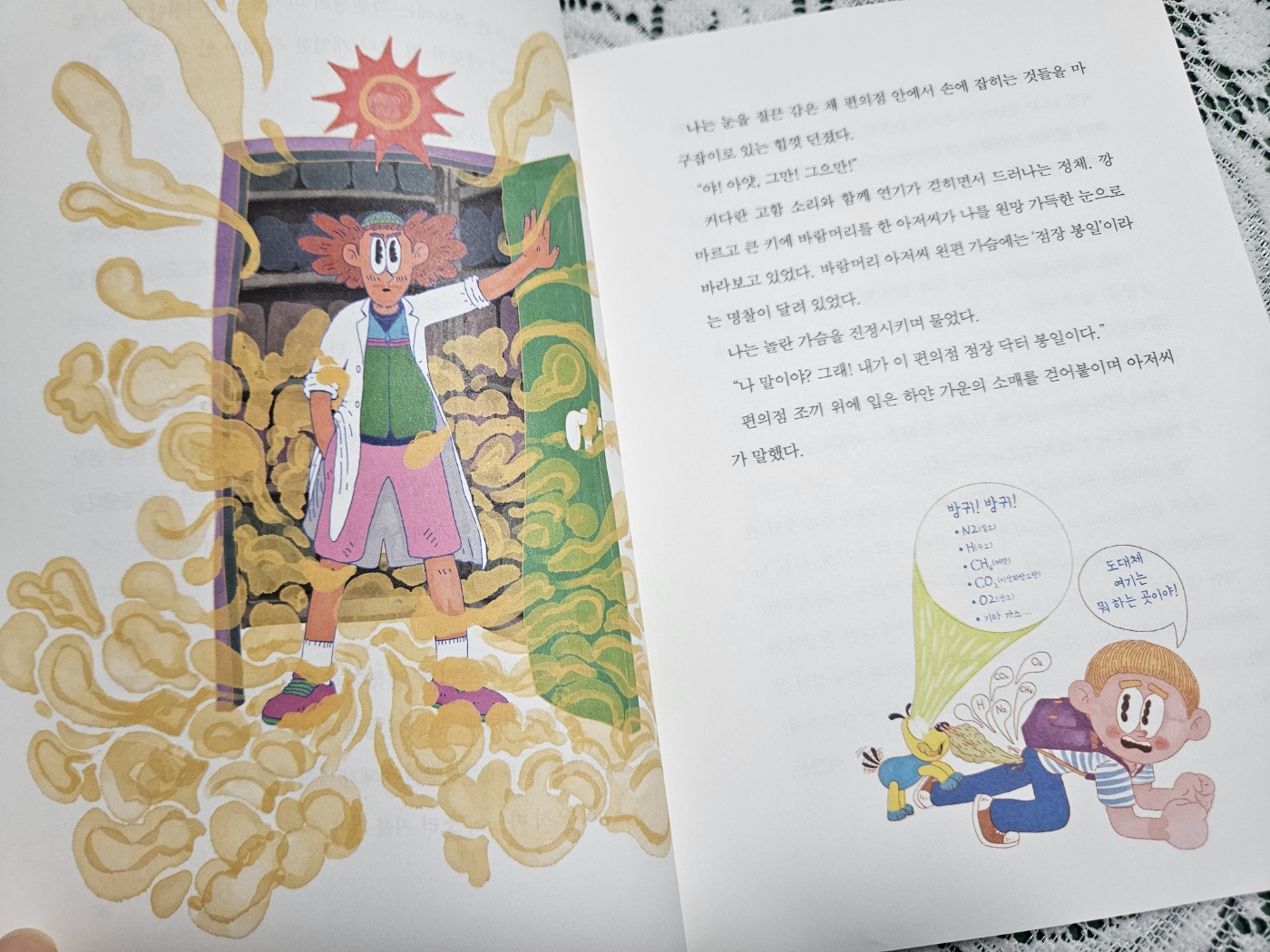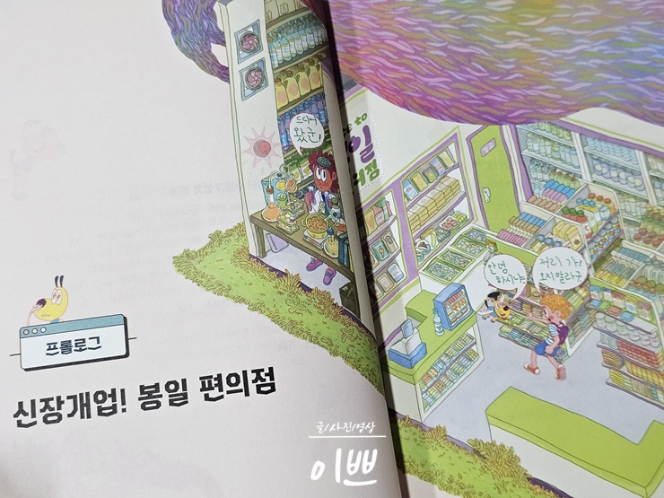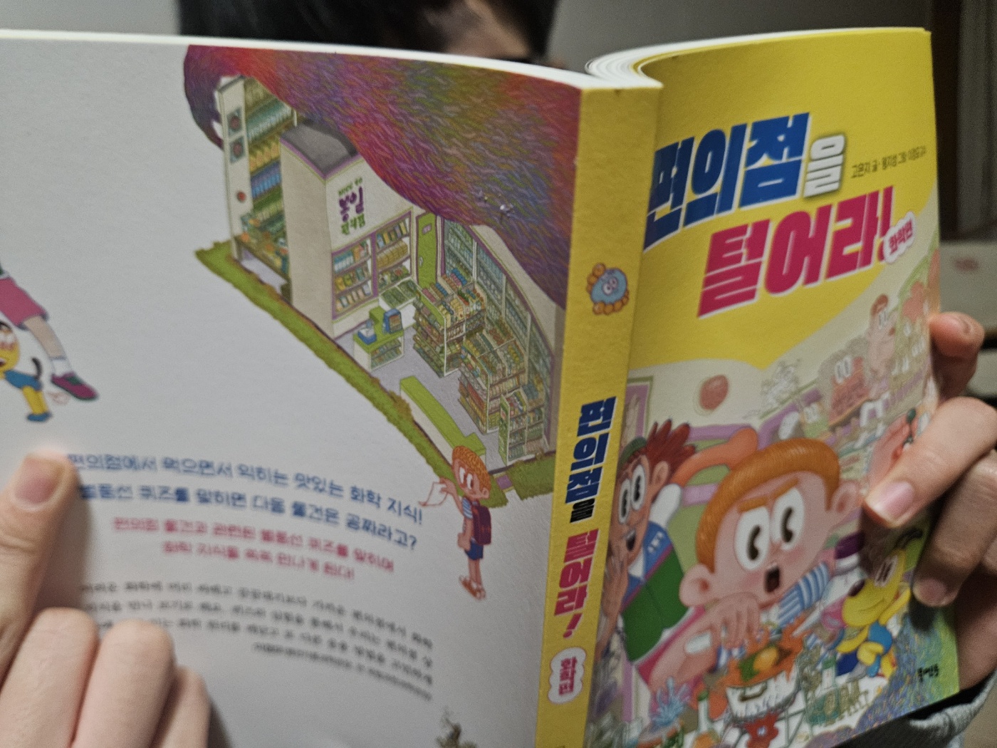[출판사로부터 도서 협찬을 받았고 본인의 주관적인 견해에 의하여 작성함] ![]() 엄마 역시 재밌어요! 역사편을 시작으로 수학편, 인체편 이번은 화학편인데 아이는 역사편이 1등이고 화학편이 2등이라고 손을 꼽네요. 편의점을 터는게 화학하고 무슨 관계냐 하며 호기심으로 출발하는 제목이죠? 오픈하는 편의점을 들어가 벌어지는 이야기로 편의점 점장이 조금 특별한? 사람들로 구성되어있어요. 이번편은 20년차 과학자겸 편의점 점장으로 나오는만큼 가게에는 과학자 다운 특성이 곳곳에 숨겨있었어요. 점장님은 주인공에게 문제를 맞추면 다음번 간식은 공짜! 라는 규칙을 주며 도명이와 안면을 트고 자주 만나게 된답니다. 도명이가 맞춰야 하는 별풍선 퀴즈는 아는 것도 있고 모르는 것도 있었다며 아이가 자기가 아는 이야기가 나오면 자기가 먼저 답을 하고 아는체하고 모르는 문제가 나오면 닥터 봉일과 도명이가 풀어가는 과정을 보면서 자기가 도명이가 된듯 열심히 읽더라구요.
