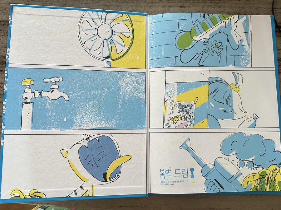 올해 유난히 더워 사실 짜증나고 바쁘고 어려운 일들이 많았다. 그림책 속 어른들의 모습이 내 모습같아서 조금 민망하기도 했다. 하지만 우주 최강 물총 삼총사들의 대활약 덕분에 웃음 팡팡이다!!!