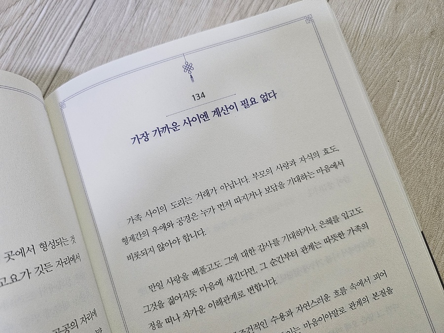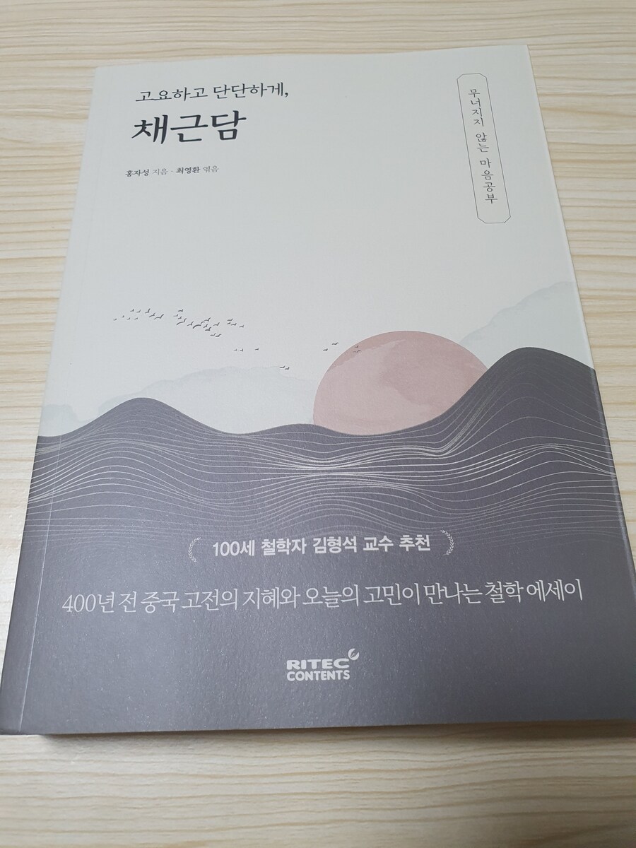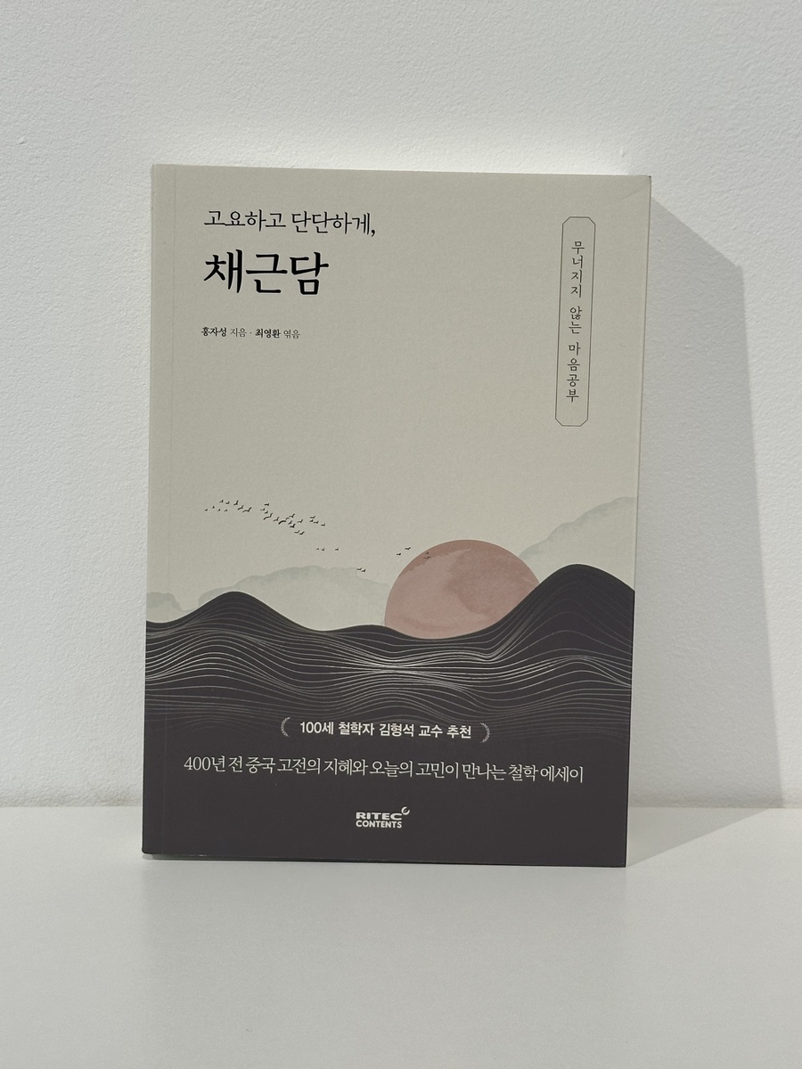 고요하고 단단하게, 채근담의 목차는 파트 7로 구성되어 있으며, 책의 제목인 "채근담" 은 "채소 뿌리의 이야기" 라는 뜻으로 소박하고 검소한 삶을 지향하는 내용을 잘 나타냈다. 채근담은 총 356편의 글로 구성되어 있으며, 각 글은 간결하지만 깊은 의미를 담고 있다. 채근담은 여러 가지 주제를 다르고 있는데, 그중에서도 어려운 상황에서도 자신은 단련하고 인내하는 것이 중요하다고 강조한다. 또한 마음의 평화를 유지하는 방법을 설명하며, 어떠한 상황에서도 흔들리지 않는 마음가짐을 가질 것을 권장한다. 이는 불교의 참선, 유교의 수양, 도교의 무위자연 사상과도 일맥상통한다. 채근담 이 책의 구성은 수백 년 동안 동아시아 지식인들에게 깊은 울림을 주어온 잠언집이다. 채근담은 시대와 지역에 따라 다양한 판본이 존재하지만, 고요하고 단단하게, 채근담 이 책은 그중에서도 가장 정통성과 원형에 가까운 것으로 평가받는 명각본을 기준으로 삼아 번역과 에세이 형태의 설명을 추가하였다. 명각본은 명대 후기 간행된 초판 또는 초기 간행본으로, 전집 222편의 구절로 구성되어 있다. 이 전집은 일상의 삶 속에서 깨달음을 실천하는 "입세의 철학"을 중심으로, 우리가 세상 속에서 어떻게 처신해야 하는지를 가르쳐준다. 단순한 처세술이 아니라, 곧 내면의 기준을 잃지 않으며 세상을 살아가는 방법을 말한다. 채근담 본문은 철학 에세이 형식으로 구성되었으며, 각 글의 하단에는 중국 고전 원문과 해석본을 별도로 수록하였다. 인문 고전에 대해서는 그 뜻을 곱씹고 사유하는 과정 그 자체가 공부이기 때문이다. 가족 사이의 도리는 거래가 아니다. 부모의 사랑과 자식의 효도, 형제간의 우애와 공경은 누가 먼저 따지거나 보답을 기대하는 마음에서 비롯되지 않아야 한다. 채근담 후대에 일부 판본에서 함께 전해진 후 집 134편은 세상 속 삶을 넘어선, 한 차원 높은 개념을 담고 있다. 이는 "출세의 철학" 이라 할 수 있는데, 자연과 그 안에서 흘러가는 삶의 고요함이 짙게 느껴진다. 전집이 사람들 속에서 살아가는 태도를 말한다면, 후 집은 한 걸음 물러나 자신을 관조 하고 마음을 비우는 삶의 방식이다. 그래서 후 집은 단순한 보충이 아니라, 채근담 이라는 수양서의 완결판이라 할 수 있다. 채근담은 인간관계에서 성숙한 태도를 유지하는 방법을 제시한다. 타인과의 관계 내에서 상호 존중과 배려를 잃지 않을 것을 강조한다. 사람이 사회 속에서 올바르게 살아가기 위해서는 그 안에서 기준을 지키는 것이 중요하다는 것이다. 세월은 조용히 흐르고, 자연은 그저 넓게 펼쳐져 있다. 그러나 사람은 자신을 조급하게 만들고, 마음의 틈을 좁혀 세상의 여백조차 허락하지 않는다. 현대인이 "채근담" 을 읽어야 하는 이유.