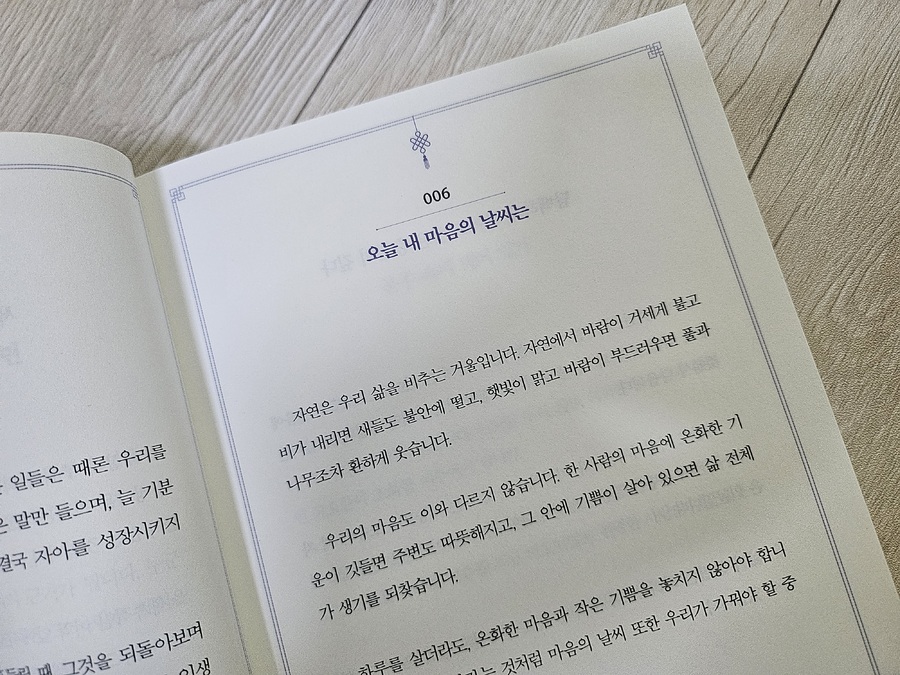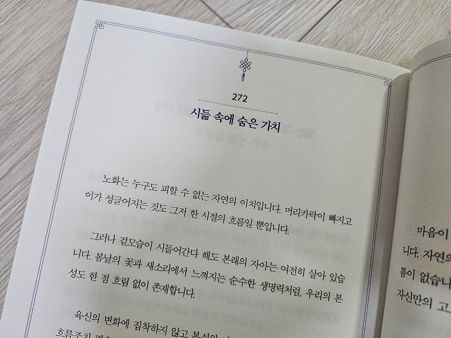 아이 치료실 들어가면 항상 대기실에서 펴놓고 읽는 책 10개씩 읽는데 마음에 와닿는 것은 몇 번 이고 더 읽고 또 읽고 그럽니다. 요즘 성경과 더불어 저한테 큰 깨달음을 주는 고마운 책이예요. 우연히 네이버 추천 글에서 보고 와닿는 글이 있어서 산건데 삶의 중심을 잘 잡아주는 고마운 책입니다 |