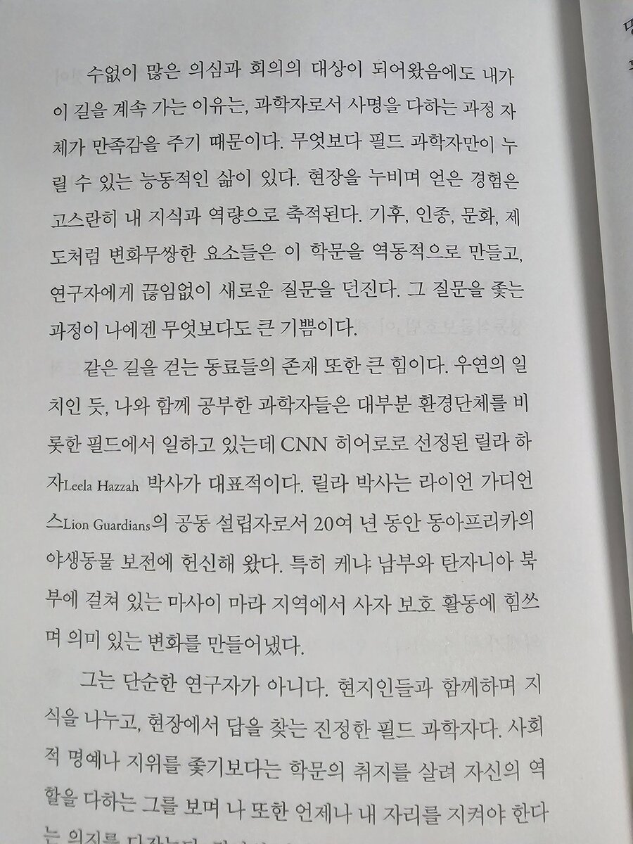 카이스트에서 생명공학을 공부하던 스물한 살, 동물원에서 눈을 마주치는 덕통 사고 후 그 대상인 아무르표범이 멸종위기 종임을 알고 <보전생물학>으로 인생의 방향키를 튼 후 20년간의 기록. 머릿말 만 읽어도 어떠한 계산도 없이 애정 하나만으로 척박한 분야에 뛰어들어 20년을 달려온 자기분야에 대한 열정과 스스로의 삶에대한 자신감은 물론 인간과 동물의 공존에 대한 저자의 깊은 마음이 느껴져 나도 모르게 심장박동이 빨라지고 눈물이 고였던. 연구와 멸종위기종 보전 활동을 위해 인니, 중국, 라오스, 벨리즈 등에서 활동한 시간들, 과학분야에서도 마이너한 분야에서 공부와 연구를 이어온 쉽지않은 과정의 이야기들, 멸종위기종의 동물들과의 에피소드들 모두에 야생동물은 물론, 인간에 대한 존중과 따뜻함이 느껴짐. 무엇보다 세상의 기준이 아니라 자신의 심장을 뛰게하는 방향으로 외길을 달려온 스스로의 삶을 소중하고 자랑스러워하는 한 인간의 생이 너무나 아름답게 느껴지는. |