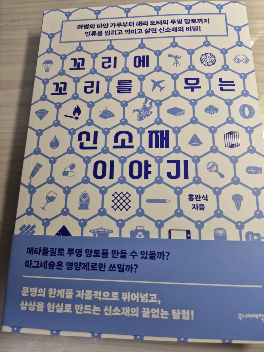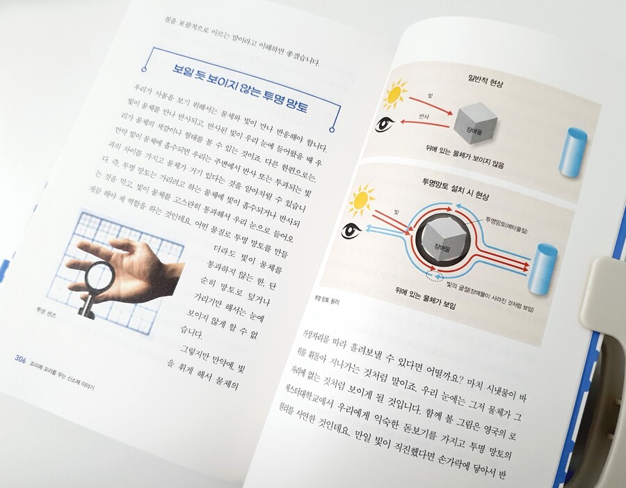 --본 포스팅은 출판사로부터 도서를 제공받아 주관적으로 작성한 리뷰입니다.-- 해리포토의 유명한 영화에서 나오는 투명망토(착용하면 몸을 투명하게 가려주는) 마법사들의 세계에서 나오는 멋진 물건을 기억하실 겁니다. 과연 내가 투명망토를 얻는 다면? 이런 질문들도 많이 하고 하고 싶은 것들이 있었을것 같은데요 우리가 알고 있는 이 투명망토 과연 어떻게 만들어지고 실현이 가능한것인지에 대한 소재의 이야기 주변의 다양한 물질들로부터 미래 신 소재 이야기 까지 상세하고 재미있는 내용들로 가득한 책입니다.