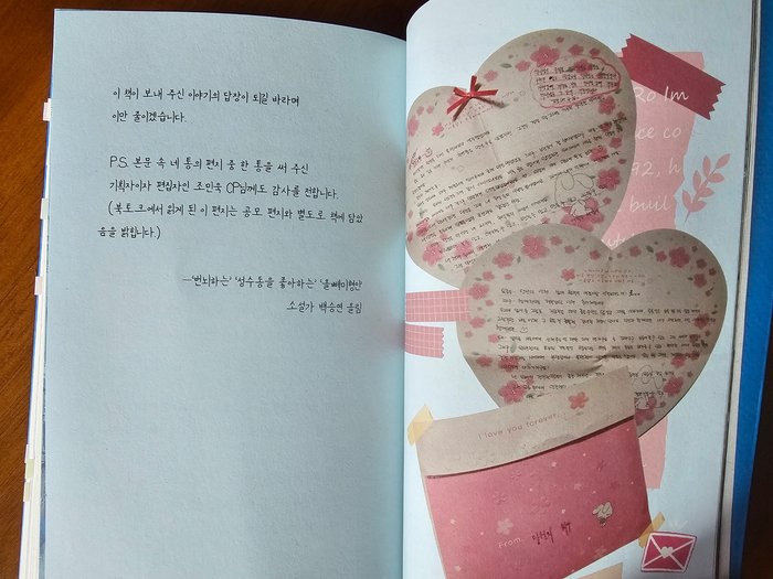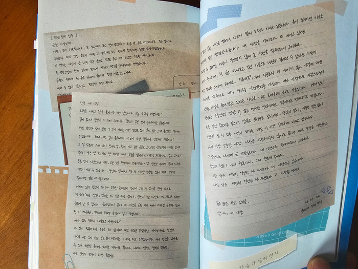 책 뒤편에는 공모한 편지 사본과 편지가게 글월을 찍은 사진이 수록되어 있다. 예쁜 편지지를 골랐을 그 마음이 먼저 엿보인다. 고심하며 썼을 시간의 흔적이 보였고, 꾹꾹 눌러쓴 글씨에서 편지를 쓴 순간이 박제되어 있는 듯했다. 편지는 결국 나를 내보이는 것. 아는 사람에게는 하지 못할 이야기를 전혀 모르는 타인에게 할 수 있는 게 편지가 가진 역할이다.