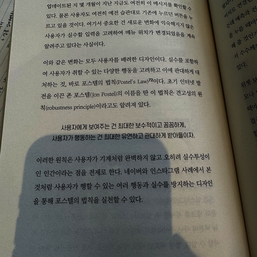 리뷰어클럽의 지원을 받고 책을 받았지만 솔직하게 후기를 작성합니다. UXUI 관련 직종에 있는 것은 아니지만, 최근에 피그마를 만지작거리면서 관심이 많아진 영역이라 책에 흥미가 갔다. 그것도 어도비, 각종 은행 앱, 애플워치, 인스타그램 등 대중적인 사례가 많이 나온다. 그래서 이 책에서 말하는 사용자를 분노하게 하는 사례, 행복하게 하는 사례 등이 '아 맞다 그거 좀 불편했지?', '나만 느낀 게 아니구나'처럼 슬며시 떠오른다. 햄릿증후군, 확증 편향, 시각적 앵커 등 내용을 읽으면 '아~'하는 내용들이 있는데 사례를 따라가며 읽다가 최근에 내가 쓰고 있는 포트폴리오에서도 적용해볼 만한 아이디어가 떠올라서 뿌듯하다 ㅎㅎ 서문에서 저자가 자신이 심리학 전공자가 아니라서 자신이 경험하거나 생각한 것들의 당위성을 고민한 흔적이 있는데 책을 끝까지 읽고 느낀점은 오히려 전공자가 아니기 때문에 같은 일반인의 입장에서 이해할 수 있도록 눈높이를 맞추어 성실하게 풀어낸 점도 있다고 생각한다. 특히 중간중간에 '생각해 볼 문제'라는 형식으로 질문을 던지는데 이 질문들은 선배 실무자가 후배 실무자들에게 던지는 좋은 질문으로 보였다. 이런 사례집들이 많이 나왔으면! p.s. 책 읽다가 듀오링고가 3~4번 언급되길래 경험해보고 싶어서 설치했다. |