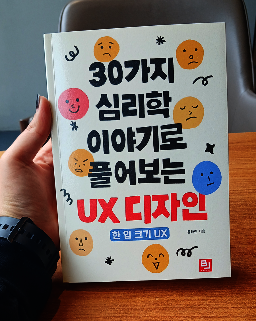 UX 디자인을 공부하며 가장 많이 들었던 말은 “사용자의 마음을 이해하라”였어요.<30가지 심리학 이야기로 풀어보는 UX 디자인>은 그 문장을 가장 설득력 있게 보여주는 책이었습니다. 책은 분노, 행복, 설득, 불안, 기억 다섯 가지 감정을 중심으로, 우리가 일상적으로 사용하는 서비스 속에 숨은 심리학 원리를 구체적인 사례로 풀어냅니다. 전문 용어 없이 부드럽게 이어지는 설명 덕분에 UX 초보자도 부담 없이 읽을 수 있었어요. 특히 ‘심리학’이라는 추상적인 개념을 디자인 언어로 자연스럽게 연결해주는 점이 인상 깊었습니다.
