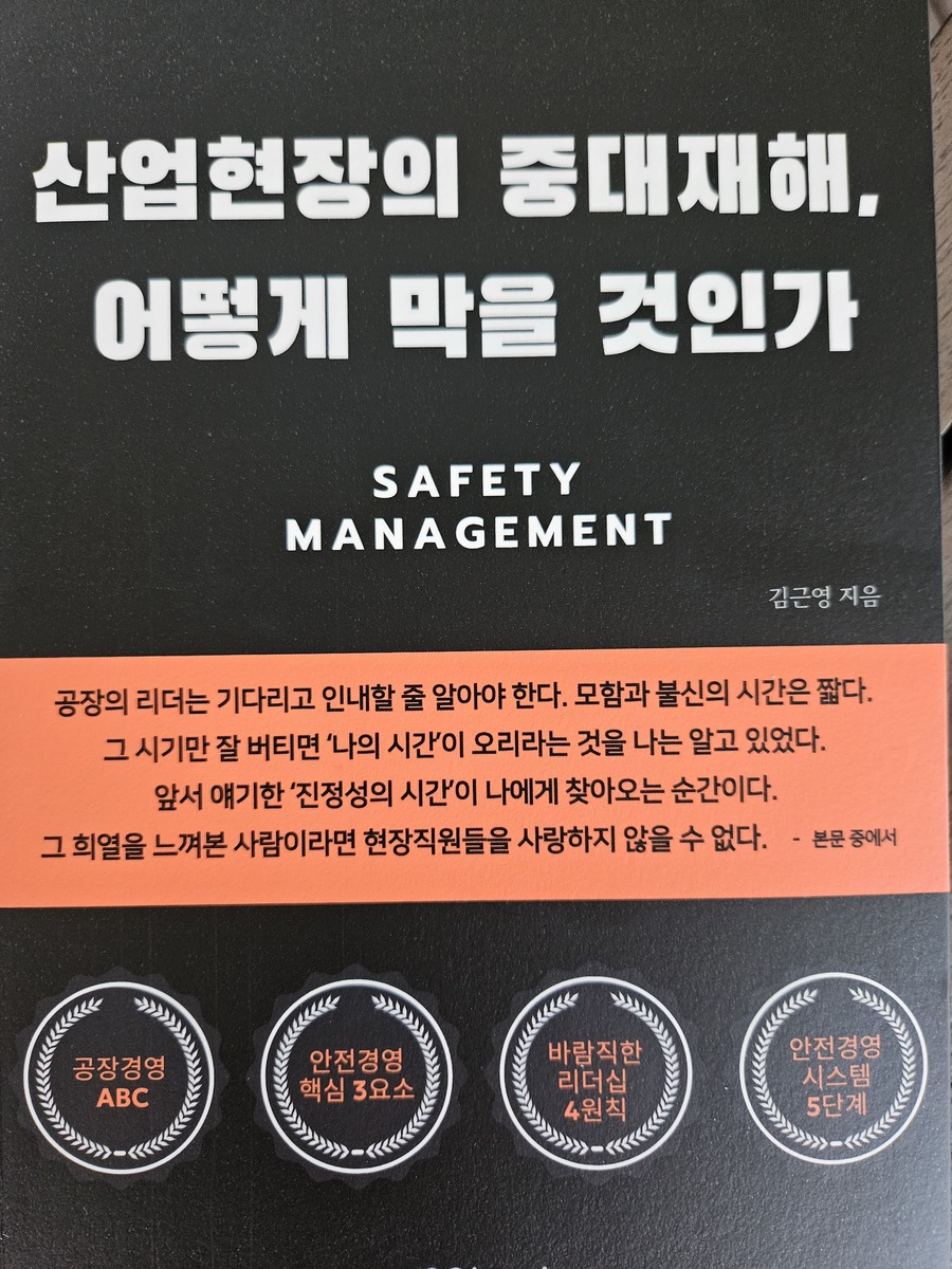 현장에서 비가 오는데, 약간의 부주의로 감전 사고가 났다는 말을 듣고서, 이러한 사고는 한 개인의, 한 기업의 일로 끝나는 것이 아니라 나라의 근간이 되는 인력 손실이라는 매우 안타깝고 가슴이 아프면서, 또 막대한 손실이란 점을 요즘 생각하고 있다. 그러다가 이 책을 받았다.