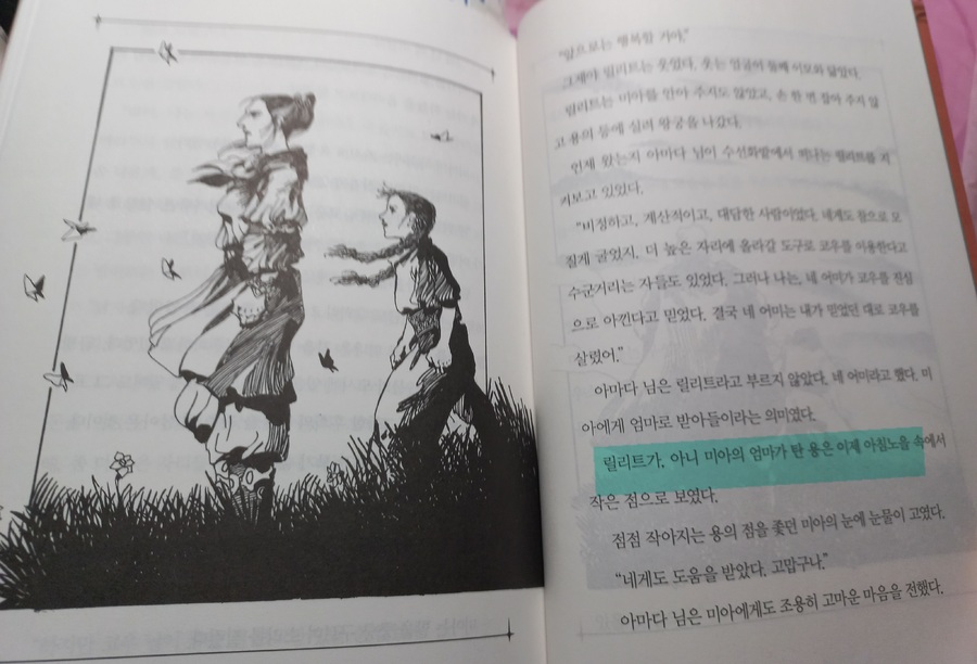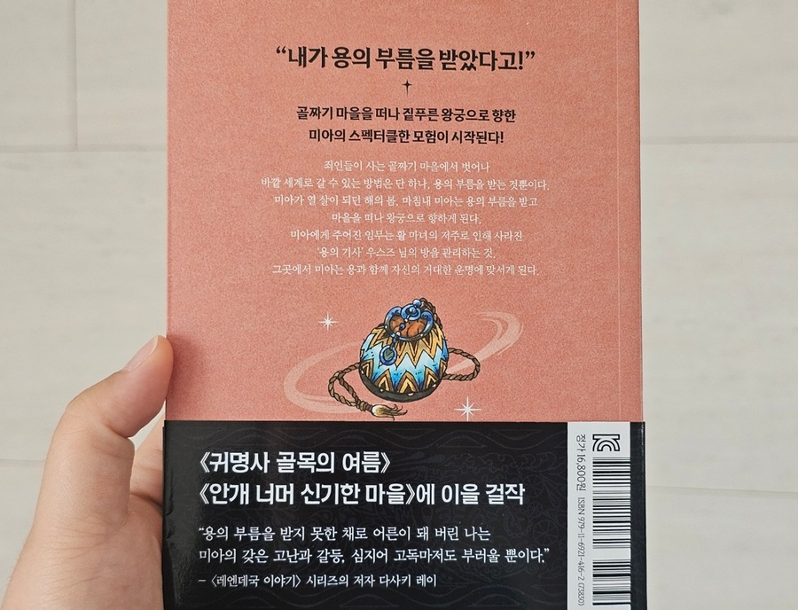 [출판사로부터 도서 협찬을 받았고 본인의 주관적인 견해에 의하여 작성함] 글밥에 꽤 많다는 생각이 들었지만 스토리 구성이 너무나 흥미로워서 빠르게 읽어지는 이야기라 다음엔 어떤 모험이 함꼐 할지 궁금하게 만드는 책이기도 하구요. 이 마을은 10살쯤 용의 부름을 받으면 마을밖으로 나갈수 있다는 이야기가 있어서 봄이면 모두 설레게 그 떄를 기다립니다 평생 마을 안에서 살지 또 다른 세상을 알수 있을지 그런데 모두의 생각과 다르게 미아가 용의 부름을 받게 되지요.. 다들 못나다 생각했던 미아가 책의 구절중에 둘째 이모가 미아야기 너는 돌잡이로 어떤것도 잡지 않았지만 아장아장 걸어서 창밖의 빛에 손을 뻗었다는 구절이 있었습니다..그러며 너는 모든것을 가지고 싶은 욕심 많은 아이란다라는 말. 아 이런 생각을 가질수 있구나 미아스스로도 생각하지 못하는것을 둘째 이모가 이야기 하는데 아이들을 부모가 어떻게 바라봐야하는지 잠시 생각하게 하는 부분이었습니다. 그리고 미아는 용의 부름으로 왕궁으로 가서 용의기사 우스즈님과 별의마녀의 저주를 풀고 우스즈님의 용을 찾아오는 모험도 하는데요. 그러면서 또 다른 회오리 마을을 방문하기도 하고 항상 어렵고 엄했다 릴리트가 누군지인지도 알게 되며 골짜기 마을에서만 지난다면 경험할수 없는 일들을 겪으며 성장하는 이야기를 보면서 다음은 또 어떤 일이있을지 궁금하게 만드는 책이었습니다. 다음은 어떤 이야기가 기다릴까요? |