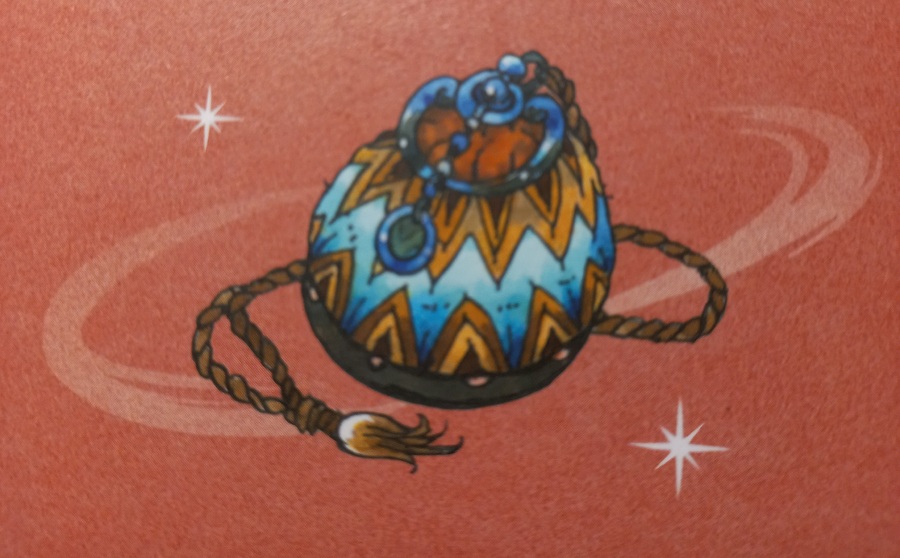 한편, 도착한 첫 날은 금방 잠에 곯아 떨어져 몰랐지만 우스즈의 방에선 이상야릇한 울음소리가 계속 들려왔다. 이로 인해 무서움과 불안감을 갖던 중 당찬 미아는 서서히 이 소리에 적응하던 차에 우연히 발견한 밑이 터진 주머니에서 그 소리가 난다는 걸 알게된다. 이에 터진 곳을 꿰메고 나자 울음 소리가 뚝 그쳤다. 이후 미아는 이 주머니를 소금을 담는 용도로 사용했는데, 나중에 은빛 날개 마녀 덕분에 '용의 기사' 우스즈가 활 마녀의 저주를 받아 작은 주머니로 변한 것임을 알게 된다.