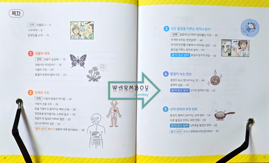만화로 재미있게 읽은 뒤 그림과 도표로 한 번 더 개념을 확인하고, 마지막으로 문제를 풀며 스스로 정리할 수 있게 되어 있어 과학에 대한 두려움 가지않고 즐겁게 기초를 다지기에 좋은 책 이였어요. |