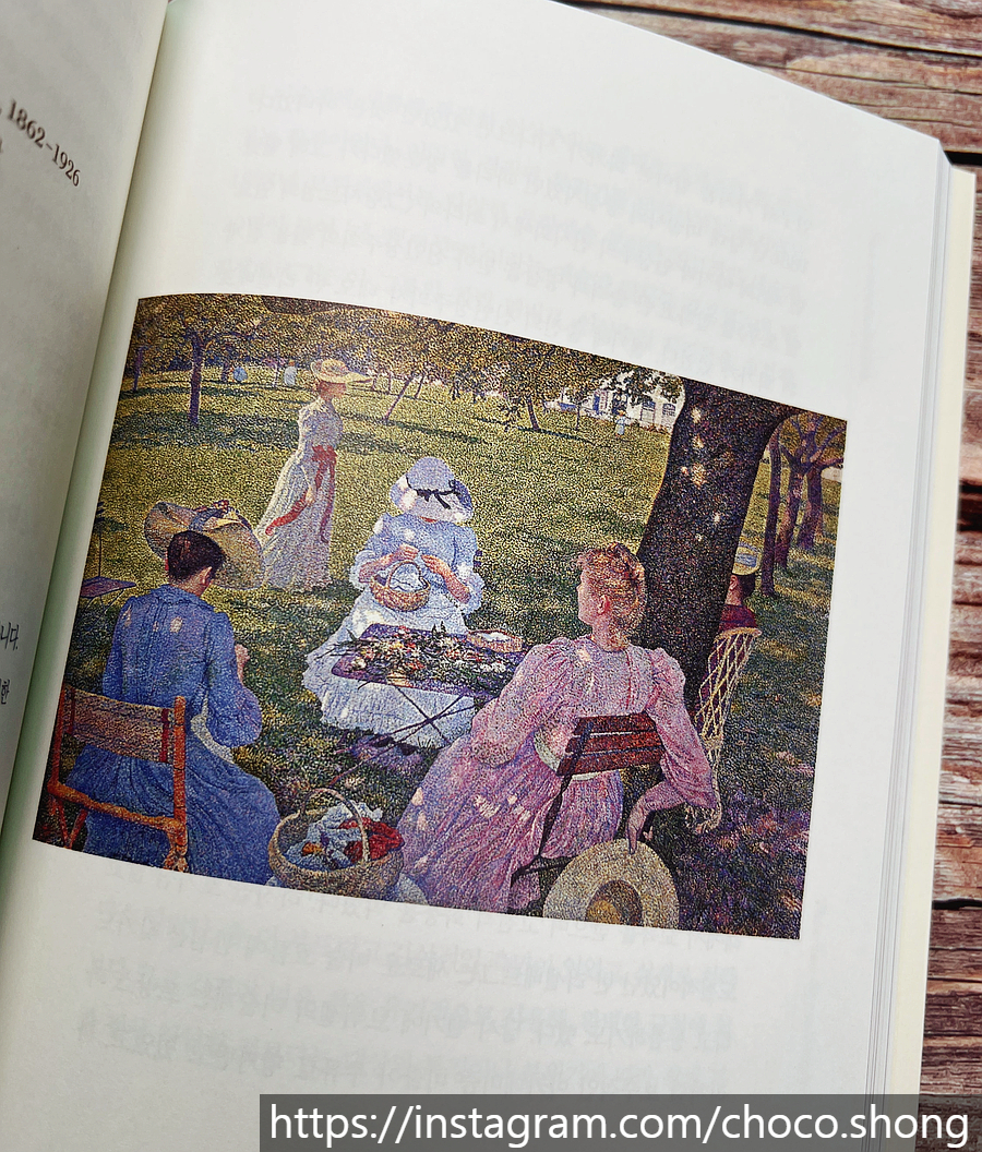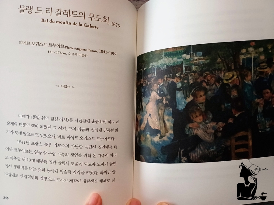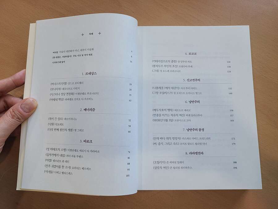 *출판사로부터 책을 제공 받아 직접 읽고 작성한 서평입니다. 매년 미술 관련 책을 1권 이상 꾸준히 읽겠다는 계획 덕분에 미술에 대한 낯섦이 좀 덜어졌다. 물론 아직 익숙하거나 애호가가 될 정도는 아니지만, 그래도 명화를 봤을 때 '본 적이 있다!'라는 반가움이 있는 걸 보니 다행이다. 하지만 여전히 피카소가 떠오르는 입체주의는 여전히 낯설다. 그래도 명화를 통해 이어져가는 미술의 사조를 한 권으로 만나볼 수 있다는 사실에 기대가 되었던 것도 사실이다. 음악보다 더 복잡한 명화의 사조를 떠올리면 드문드문 이 빠진 곳이 유난히 많다. 기왕이면 순서대로 혹은 사조와 관련된 화가와 작품이 연결되면 참 좋겠다는 생각이 들었는데, 시대를 타고 가는 연표가 첫 장에 등장하니 마음이 편하다. 암기까지는 아니겠지만, 한 번씩 '뭐였지?' 싶을 때 첫 장만 펴보면 되니 이만한 소득이 어디 있을까 싶다. 흥미로운 것은 그림에도 유행이 있다는 것이다. 일부러 묶으려고 묶은 건 아니지만, 선구자적 화가와 그의 그림에 감동을 받은 후배 화가들에 의해 해당 사조가 이어진다는 것이다. 지금처럼 인터넷이 활발한 것도 아니고, 그렇다고 미술관이 모두에게 개방된 시대도 아님에도 비슷한 화풍을 가진, 비슷한 모습을 지닌 그림들이 등장했다는 사실 자체만 해도 흥미롭다.