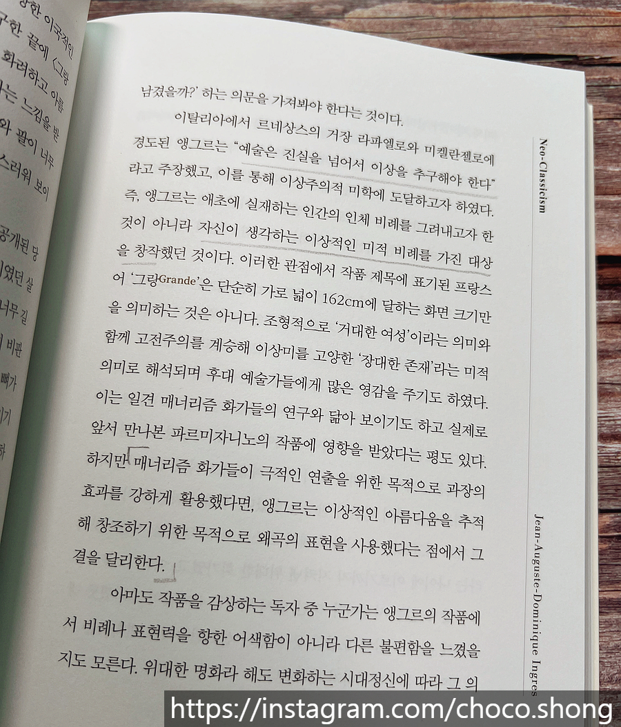 【 <별이 빛나는 밤>은 너무나 고요하고 아름답지만 그래서 더 외롭고 고독했던 자기 감정을, 실제로는 그렇게 보일 수 없었던 휘몰아치는 밤하늘의 풍경으로 담아낸 결과물이었다. 이 작품에서 우리는 신인상주의자들의 과학적이고 이성적인 접근법과 다른, 강렬하고 감성적인 반 고흐만의 색에 대한 본능적인 감각을 느낄 수 있다. 또한 물감을 꾸덕꾸덕하고 두텁게 쌓아올리는 임파스토Impasto 기법을 극대화하여 요동치는 자신의 감정을 담아낸 표현력, 산의 능선과 마을 집들의 외곽선을 마치 만화처럼 처리하는 구획주의Cloisonnism 기법을 통해, 일본 판화에서 받은 영향과 동서양 기법의 융합이라는 진화의 흔적을 만나볼 수 있다. 】 (p. 296) 【 세월이 지나 현대에 이르러 <시녀들>은 서양미술사에서 가장 많이 연구되고 논의된 작품 중 하나가 되었고, 혁신적인 공간 구성으로 작가, 대상, 관객이라는 회화의 삼각 구도를 파괴하고 재해석함으로써 시대를 앞선 작품으로 평단의 극찬을 받으며 최고의 명화로 손꼽히게 되었다. 】 (p. 107) #한번쯤은서양미술사 #김찬용도슨트 #서양미술사입문서 #책추천 #책소개 #미술책추천 #명화감상 #초코숑의책이야기 |