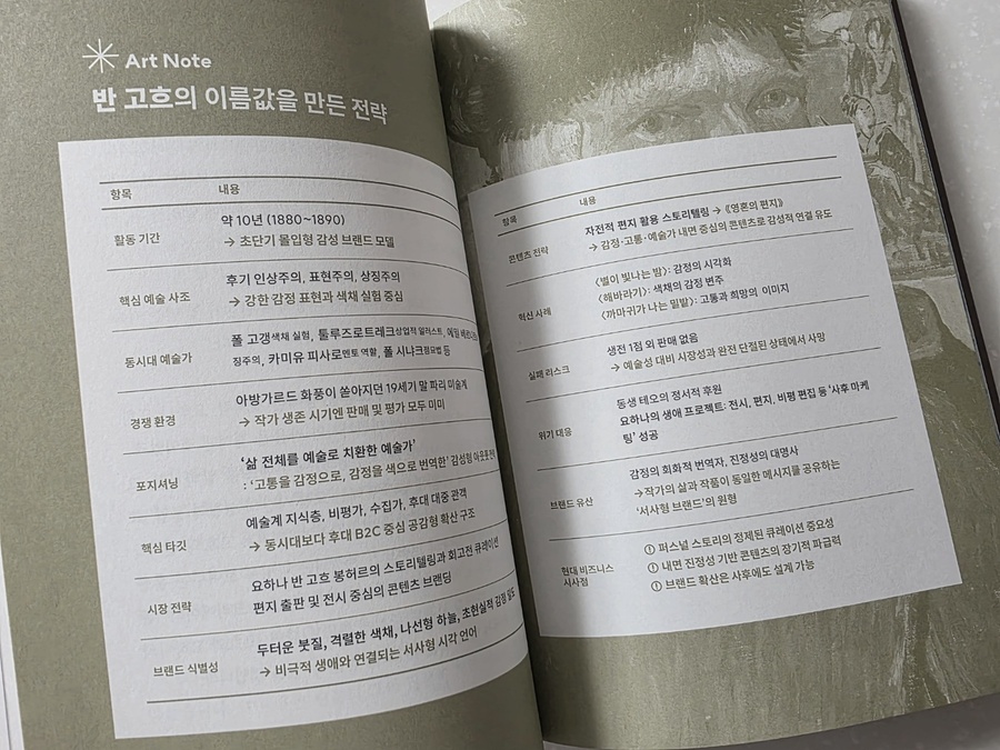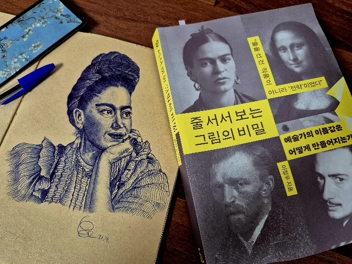 저자소개이 글을 쓴 이정우 작가는 미술대학을 나와 회화를 전공했지만 예술에 대한 글 쓰는 작업에 매진했다. 작가는 그림 실력이 있었지만, 개성이나 관점이든 특별한 강점이 있어야 된다고 생각했다. 그러므로 레오나르도 다빈치, 미켈란젤로처럼 이름이 기억될만한 그런 예술가가 될 수 없을 것 같았다. 그렇다고 예술을 포기하기엔 예술과 예술가, 미술관을 너무 사랑했기에 학자들의 연구를 거쳐 미술사에 기록되고, 관객들이 시간을 써가며 줄 서는 그림의 비밀이 뭔지 파고들기 시작했다. 저자는 이 책이 관객을 줄 세우는 다른 예술가의 탄생에 도움이 되기를 바라며 글을 집필했다. 목차 소개 줄거리요약 이 책은 수백 년 전의 예술가부터 동시대에 살고 있는 예술가까지 제각기 다른 상황과 예술관을 가진 예술가 열한 명을 다룬다. 그들이 예술가로서의 고통과 고뇌를 안으며 생의 마지막까지 그림을 포기하지 않고 예술을 피어오르며 완주해온 서사들이 녹아져 있다. 그뿐만 아니라 그들이 어떻게 브랜딩화 되어가는지 어떠한 전략을 만들어 그들의 이름과 작품이 알려지는지를 이들만의 전략을 들려준다. 작품 역시 서사가 필요하다. 열한 명의 예술가 중에는 내가 좋아하는 반 고흐와 프리다 칼로도 속해 있다. 나는 그들의 작품을 좋아했지만 그들 작품의 설명과 브랜딩 전략을 듣고 더 깊이 좋아하게 되었다. 먼저, 반 고흐에 대해 이야기하자면 그는 생전에는 그림을 그리는 일 외에는 동생 테오에게 그림을 판매하는 일을 맡겼다. 생전에는 그림 한 점 외에는 판매가 없었으며, 고흐가 자살 후에 동생 테오도 신경 쇠약으로 세상을 떠나게 되자 테오의 아내 요하나가 고흐 유산의 유일한 상속자가 되었으며, 그녀는 고흐의 회고전을 여는 등 그림을 판매하는 큐레이션에 능숙했다. 동생 테오와의 편지와 테오의 아내 요하나가 없었다면 그의 죽음 후에는 어땠을까 싶었다. '영혼의 편지'라는 마케팅 콘텐츠가 없었다면, 그의 서사를 알 수 있었을까? 요하나의 큐레이션 능력이 고흐의 진정성을 재발견하게 할 수 있었다. 그만큼 큐레이션의 중요함을 알게 되었다.