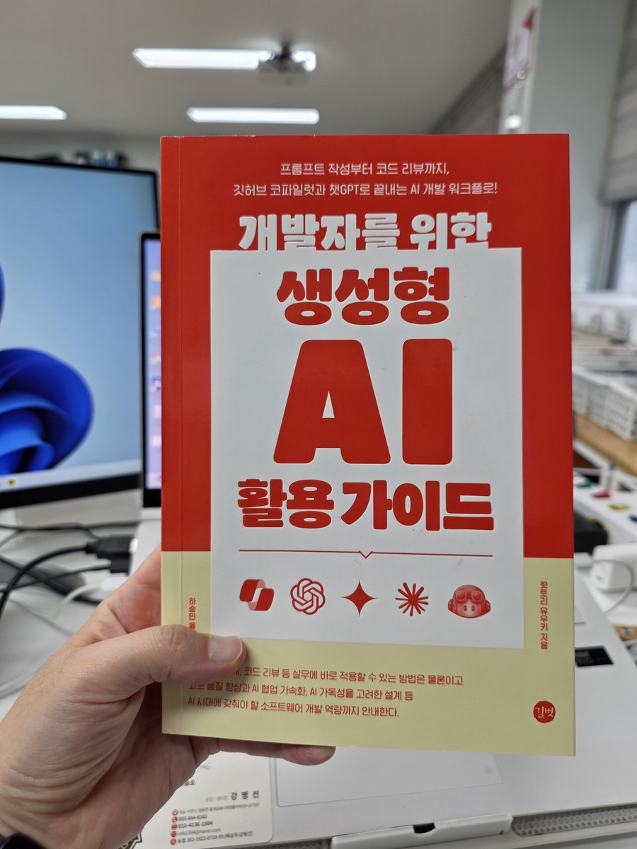 ✨책을 읽고 난 소감- ‘AI 때문에 개발자는 필요 없어지지 않을까?’라는 말은 항상 기술의 발전과 함께 했다. 하지만 결국은 AI가 아무리 뛰어나도 인간이 적절히 활용해야 하고, 이는 새로운 기회의 창출로 받아들여져야 한다. - 나는 교육하는 사람이다. 교육하는 입장에서 AI가 교육 현장에 오는 걸 어떻게 받아들여야 하나? 하지만 결국은 이를 활용하여 교육 현장에 적절하게 활용한다면 이는 또 하나의 새로운 기회라고 생각이 든다. - 이 책은 단순히 “AI 도구를 잘 쓰는 법”을 가르치지 않는다. 프롬프트를 입력하기 전에 “내가 AI에게 무엇을 묻고자 하는가”를 먼저 생각하게 만든다. - AI의 활용 능력은 결국 인간의 사고 정교함에 달려 있다는 통찰이 담겨 있다. 특히 실제 개발 프로젝트를 하는 입장에서, ‘AI를 코드 리뷰 파트너로 두는 방법’, ‘AI 출력물의 품질 관리’ 등은 매우 실질적인 도움이 되리라 생각하였다. - 기술적 깊이와 철학적 성찰이 잘 어우러진 보기 드문 책이라고 생각한다.