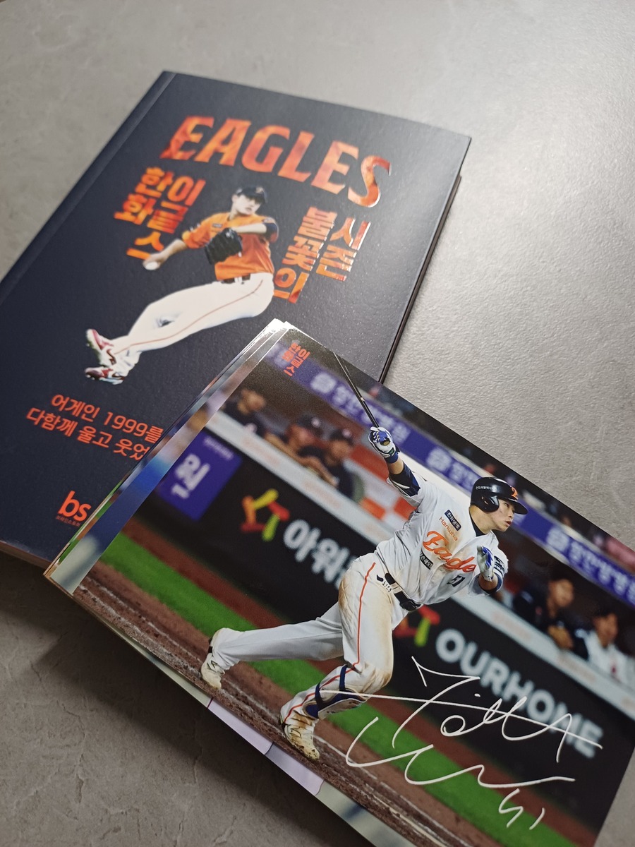 올 한해 한화이글스와 함께 울고 웃으며 신나게 응원하다보니 어느새 한 해의 끝자락입니다. 7년만의 가을 야구에 들떠 있던 순간 조은혜 기자의 이 책이 출간 된다는 소식을 듣고 고민 없이 바로 예약했더랬습니다. 이제 막 날개를 펼치고 비상하는 아기 독수리들의 사진들과 사인은 덤이로군요. 이 책 응원의 힘을 받아 KS까지 힘차게 날아오르길 바랍니다.