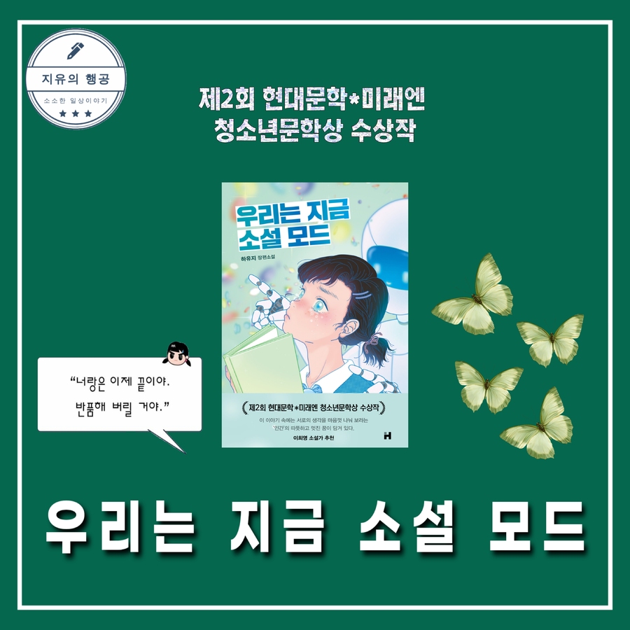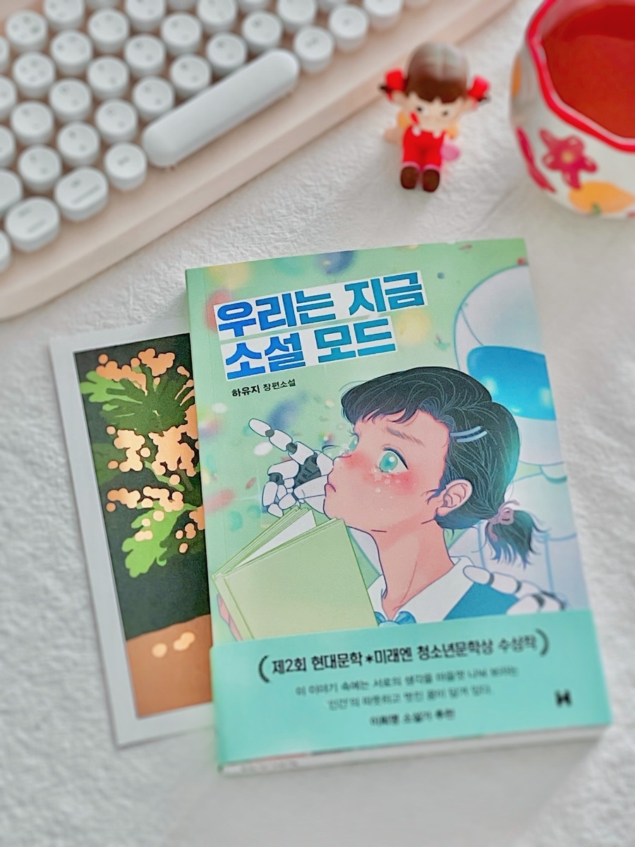 성장소설 <우리는 지금 소설 모드> 책을 줄거리와 개인적인 생각을 남겨보려고 한다. 나는 청소년소설을 굉장히 좋아하고, 특히 성장소설이 주는 많은 생각들과 어린날의 나를 만나는 시간이 참 좋다. 하유지 작가의 신작 소설추천 우리는 지금 소설 모드 책 줄거리를 보면 알 수 있듯이 로봇과 아이의 우정을 그리고 있으며, 그 속에서 자신의 선택과 창작의 본질 및 인간성에 대해 담았다. 청소년 독자에게 다양한 질문을 건네며 사회의 윤리적 문제를 볼수 있다. 요즘은 AI시대라고 불릴만큼 다양한 곳에서 AI가 활용되고 있고 글쓰기와 그림 등 다양한 창작에서도 AI가 사용된다고 한다. 제2회 현대문학, 미래엔 청소년문학상 수상작으로 성장소설로 추천한다. 책속의 주인공 미리내가 집안일 로봇인 아미쿠와 함께 소설을 쓰면서 쌓아가는 우정과 친구들의 행동에 상처받고 그 속에서 성장해가는 이야기를 그렸다. 어쩌면 이들이 키워나가는 우정속에서 더 많은 감정들을 느낄수 있어서 더 좋았던 청소년 한국소설이었다. 현대문학 출판사의 신간도서로 청소년뿐만 아니라 성인이 읽어도 좋은 한국소설로 추천하고 싶다. 로봇 아미쿠의 도움으로 친구들 사이에서 인기 작가가 되었지만 마음속에서는 과연 이 작품은 내것인지에 대한 생각들이 커지고, 친구들의 의심속에서 혼란스러운 감정을 잘 나타냈다. 한국 소설추천 <우리는 지금 소설 모드>는 AI시대에 살고 있는 우리에게 많은 이야기를 안겨주며 생각할수 있게 돕는다. 하유지 작가가 건네는 따스하면서도 감동적이고 우정에 대해 생각할수 있는 성장소설 '우리는 지금 소설모드 줄거리'와 함께 개인적인 생각을 리뷰해본다. (줄거리와 책사진&영상은 블로그에서 확인가능합니다.)<점점 인공지능의 생활이 일상화되어가고 있는 요즘 어쩌면 많은 이들이 고민하고 있을 그 많은 문제들을 AI가 모두 해결해 줄 수 없다. 내 마음을 알아차리고 용기를 갖고