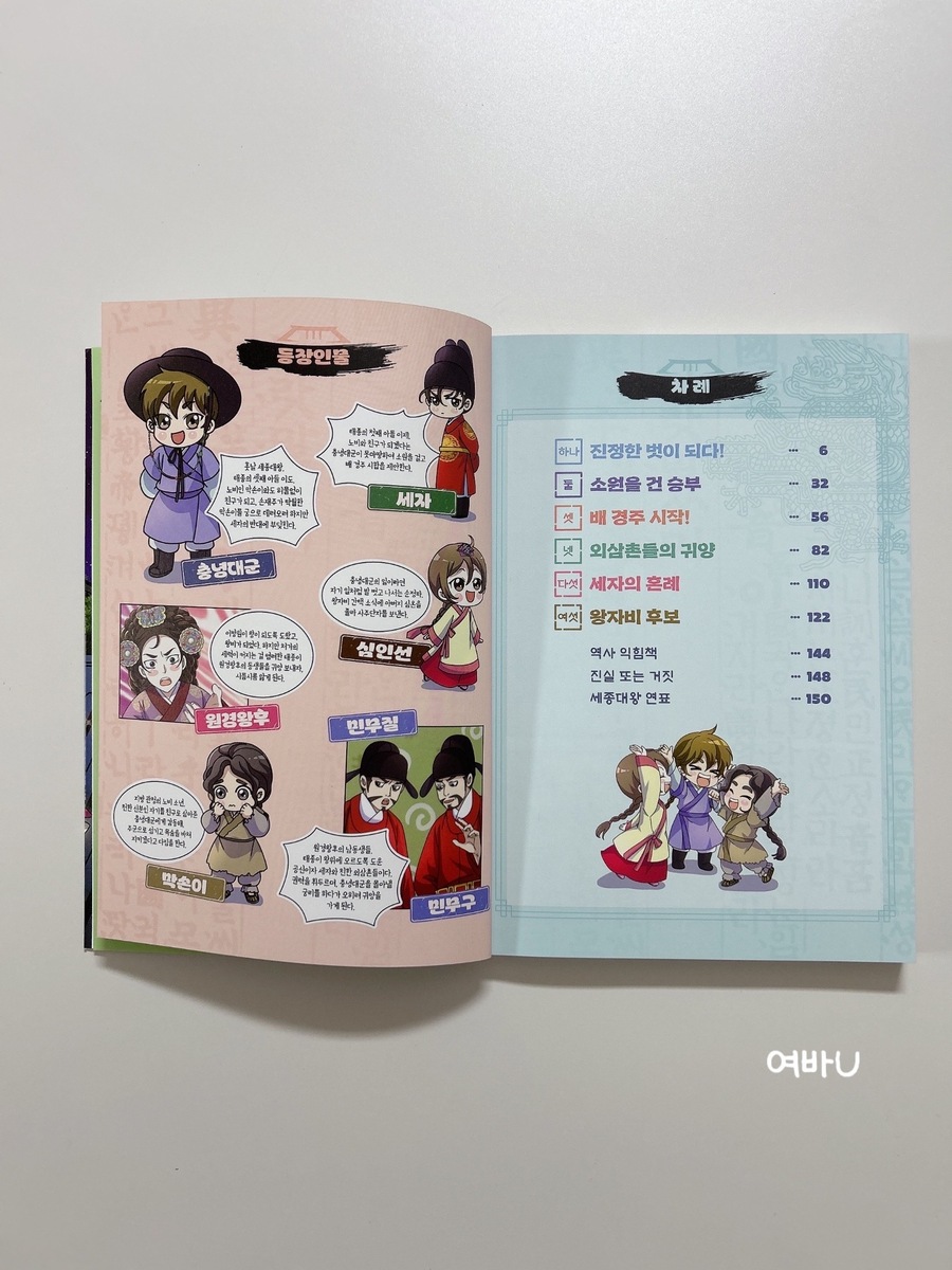 - 이 책은 아울북으로부터 제공받아 읽고 솔직하게 작성한 리뷰입니다 - 이번에는 아울북의 우리 영웅 시리즈 열혈 세종대왕이 3권이 새로 나왔는데요 이 책에서는 세종대왕의 일대기를 만화로 재미있게 다루고 있지요. 이번 권에서는 세자인 형과 함께 배 시합을 하는 모습이 인상적이었답니다. 역시 충년대군라는 소리가 절로 나올만큼 지혜로움이 돋보였죠 . 또한 노비를 친구가 되겠다는 충년대군 충년대군과 막손이, 인선이가 별을 보는 모습도 잊을 수가 없다고 하더라고요. 과연 인선이가 충년대군과 혼인을 할 수 있을지 벌써 다음권이 궁금해지네요. 책 뒷부분에 역사익힘책과 만화속 역사를 통해서 또 재미를 주어서 그 부분 또한 열심히 읽어보았답니다. 세종대왕 연표도 있는지라 연표를 보면서 세종대왕의 탄생부터 쭉 살펴볼 수도 있었어요 어서 4권이 나오기를 기다리고 있는 아이들이랍니다. |