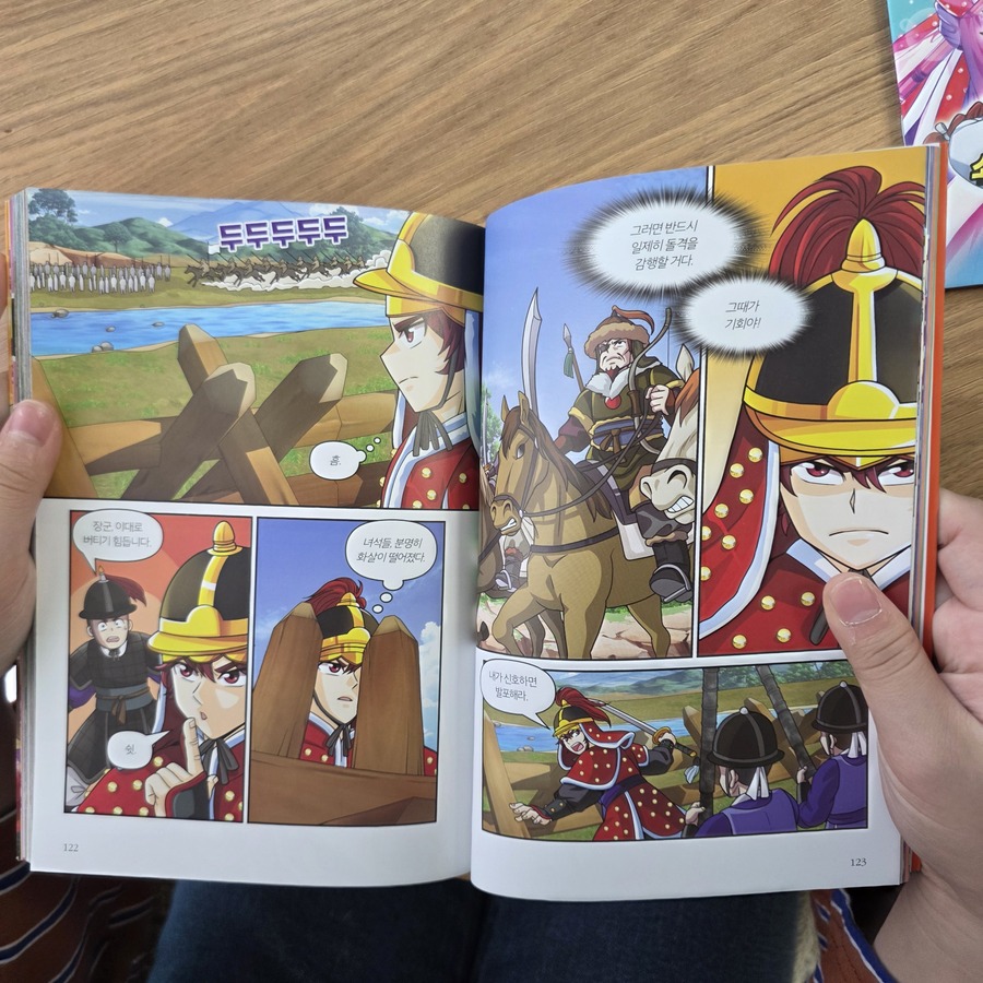 역사를 생생하게! 우리 영웅 시리즈의 시작, [무적 이순신] 우리가 알고 있는 틀에 박힌 위인 이순신에게서 벗어나, 소년 이순신의 생생한 성장 스토리를 담고 있어 더 흥미롭게 읽을수 있어요. 책 속에서 이순신이 성장하는 모습을 따라가다 보면, 영웅 이순신을 이루는 중요한 가치인 끈기, 불굴의 정신, 리더십을 물론 역사 그 자체인 이순신의 생애를 배울 수 있답니다. 7권의 이야기 조금만 만나볼까요? 한성 훈련원의 봉사로 가게 된 이순신은 병조 정랑의 부정한 청탁을 거절합니다. 이에 앙심을 품은 병조 정랑이 이순신을 좌천시키며 괴롭히자 어린 시절 친구인 류성룡은 이 부당한 일을 바로잡기 위해 발 벗고 나서고... "지기지피면 백전불태" 나를 알고 적을 알면 백 번을 싸워도 위태롭지 않다는 멋진 [무적 이순신] 책을 읽고 나서는 재미있게 독후 활동을 할 수 있어 좋았답니다. 우리가 몰랐던 이순신 장군의 성장 스토리 무적이순신에서 만나보세요!