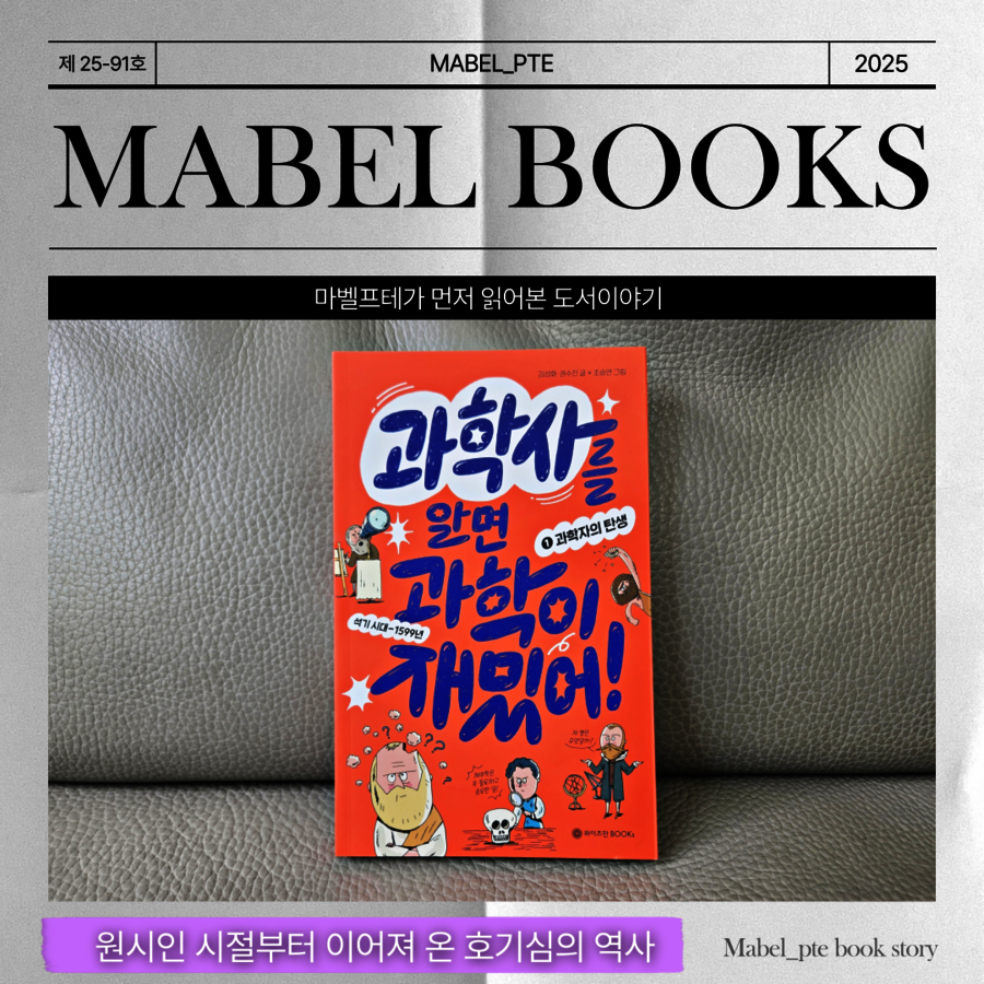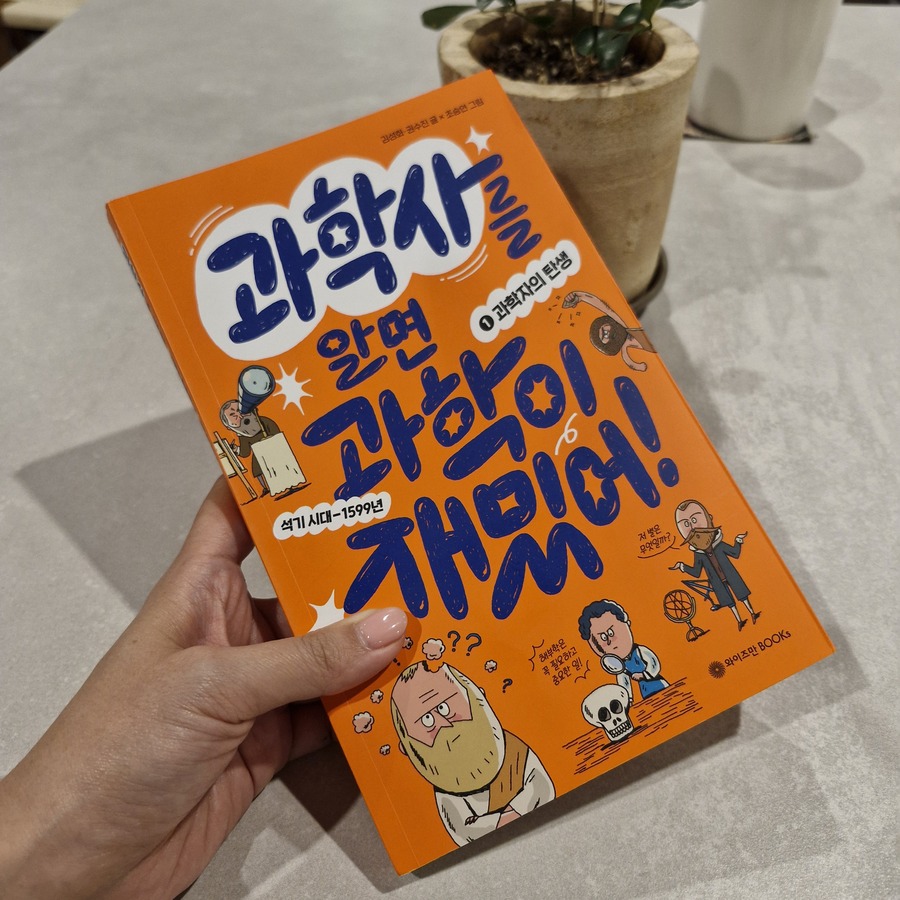 ① 과학자의 탄생 김성화·권수진 글 | 조승연 그림 | 224쪽 | 17,000원 우리 집 초등학생 4학년, 6학년 두 아이가 요즘 푹 빠져 있는 책 한 권 제목부터 벌써 흥미로운 “과학사를 알면 과학이 재밌어!” 이 책은 말 그대로 과학의 역사를 어린이 눈높이에 딱 맞게 풀어낸 책이다 ‘과학자의 탄생’이라는 첫 번째 권에서는 석기시대부터 르네상스 직전까지, 인류가 세상을 이해하기 위해 어떤 궁금증을 품었고, 그걸 어떻게 실험하고 관찰하며 밝혀냈는지를 아이들의 눈높이에 맞추어 재미있게 보여준다 이 책을 읽다보면 만날 수 있는 과학자들이 있는데..! 최초의 과학자 탈레스, 지구 둘레를 잰 에라토스테네스, 그리고 망원경을 하늘로 들어 올린 갈릴레오까지! 아이들이 이름만 들어봤던 과학자들이 웹툰처럼 구성된 페이지 속에서 만날 수 있다 그림과 짧은 대사, 간단한 설명이 함께 있어서 과학책이라기보다는 이야기책이나 만화책처럼 술술 읽히는 게 특징!👍 그래서 과학이 어렵게 느껴졌던 아이도 “이렇게 과학이 시작됐구나” 하며 흥미를 느꼈던 책이었다 책을 집에서 한 번 읽더니 너무 재밌다며 학교에 가져가더니 며칠째 집에 안 가져오고 있던 도서😨 친구들이랑 같이 보고 있었던.. 그만큼 아이들도 재미있고, 쉽게 읽히는 과학 이야기라는 뜻이겠지? '목차' 일부를 살펴보면 * 인류에게는 호기심 유전자가 있어 * 생각만 하지 말고 관찰을! * 막대기 하나로 지구의 둘레를 재다 * 해부학자 베살리우스의 놀라운 실험 * 갈릴레오, 하늘을 향해 망원경을 들다 이런 이야기들이 차례로 이어지면서 아이들이 자연스럽게 과학의 시작과 발전 과정을 이해할 수 있다 교과서보다 훨씬 쉽고 흥미롭게 과학사를 배울 수 있고 과학자들의 엉뚱하지만 진지한 도전과 실패를 통해 생각하는 힘과 호기심의 가치를 배우며 글과 그림의 조화가 좋아서 과학이 싫은 아이도 거부감 없이 읽었던 책 과학을 접하는 초등학생에게 추천! 아이들이 이 책을 읽다 보면 어느새 “나도 실험해 보고 싶다!”는 말이 나올 거다. 4학년 아이가 학교에 가져가서 안 가져올 정도로 재미있고 흡입력 있는 과학책이라고😊 출판사로부터 도서를 제공받아 읽고 쓴 리뷰 입니다. #와이즈만북스 #과학사를알면과학이재밌어 #과알과재 #과학사 #신간도서 #추천도서 #초등과학