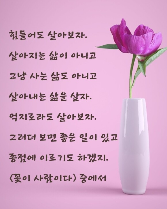특히, 글마다 배어있는 사람을 생각하는 마음으로 꽃을 대하고 꽃을 대하는 마음으로 사람을 대하는 시인의 관점이 너무 좋다.