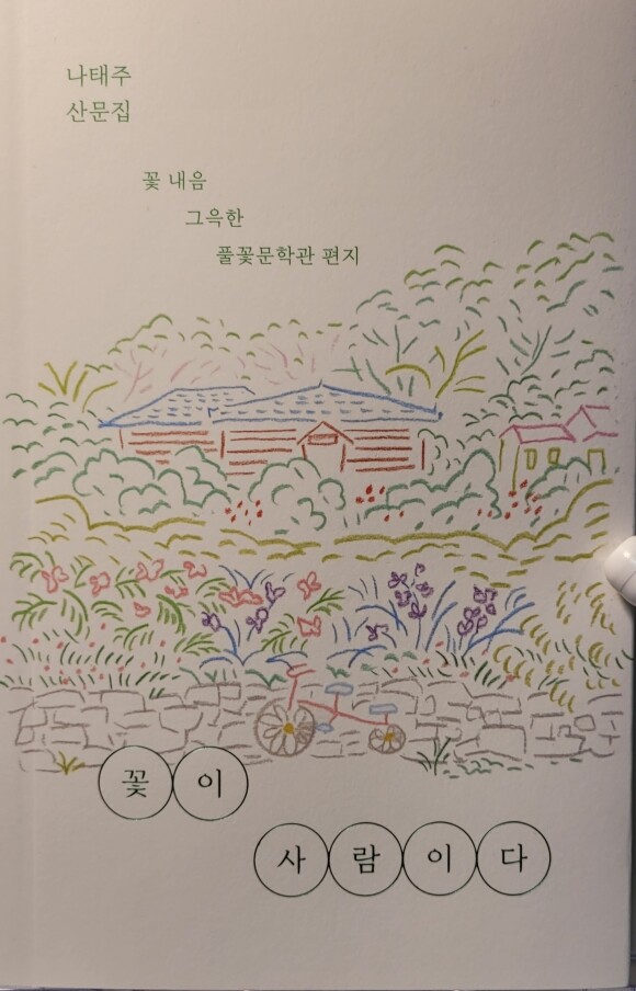 나태주 시인의 시인 '풀꽃' 중 한 구절인데, 이 시를 읽으면 시인의 풀꽃에 대한 사랑과 사람을 바라보는 따스한 시선이 느껴져서 좋아한다. 이처럼 시에서 풀꽃예찬을 하며 풀꽃에 대한 사랑을 외칠 정도로 실제로 나태주 시인은 꽃과 나무를 가꾸고 돌보는 것을 사랑한다. 그래서 풀꽃문학관에는 갖가지 풀꽃들과 나무들이 있어 그곳을 찾는 사람들에게 봄향기를 전해준다. 올해는 공주 풀꽃문학관이 개관한 지 10주년이 되는 해라고 한다. 곧 개관할 새로운 문학관과 더불어 지난 10년간 풀꽃문학관이 지나온 길을 돌아보고자 하는 의미에서 나태주 시인은 이 책 『꽃은 사람이다』를 집필하였다고 한다.