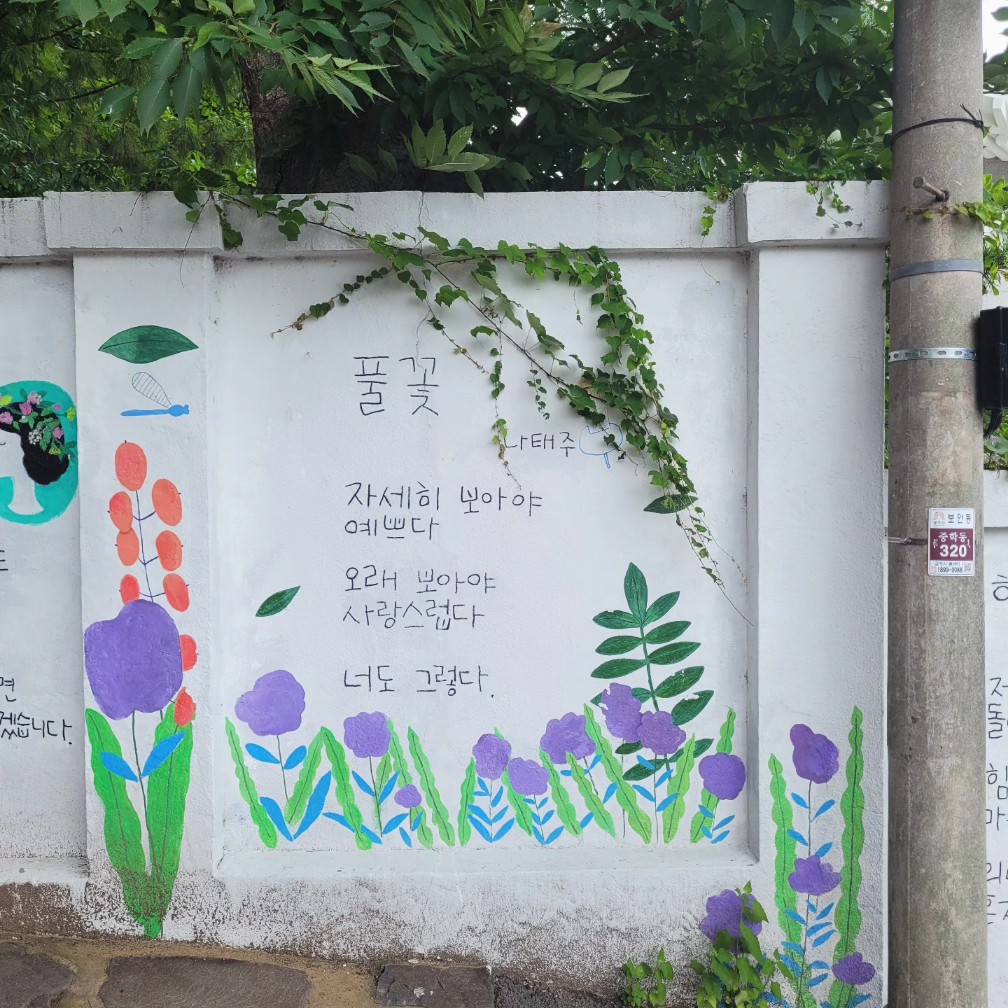 "자세히 보아야 예쁘다. 오래 보아야 사랑스럽다. 너도 그렇다." -<풀꽃> 중