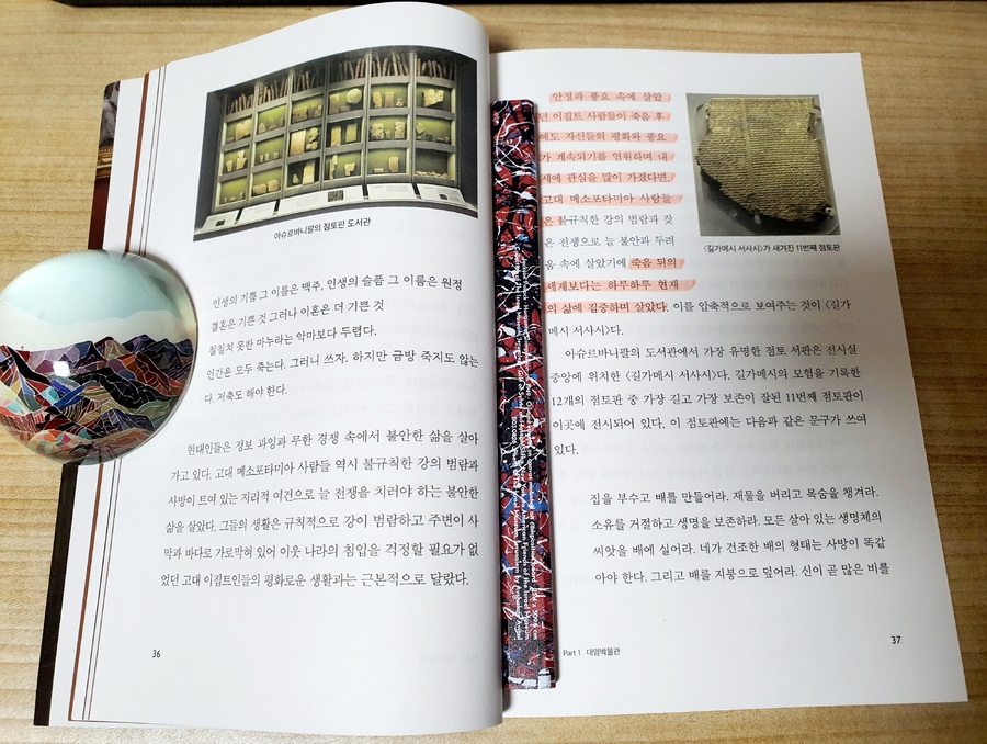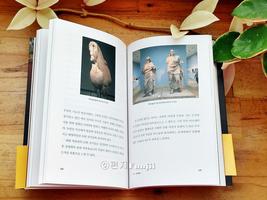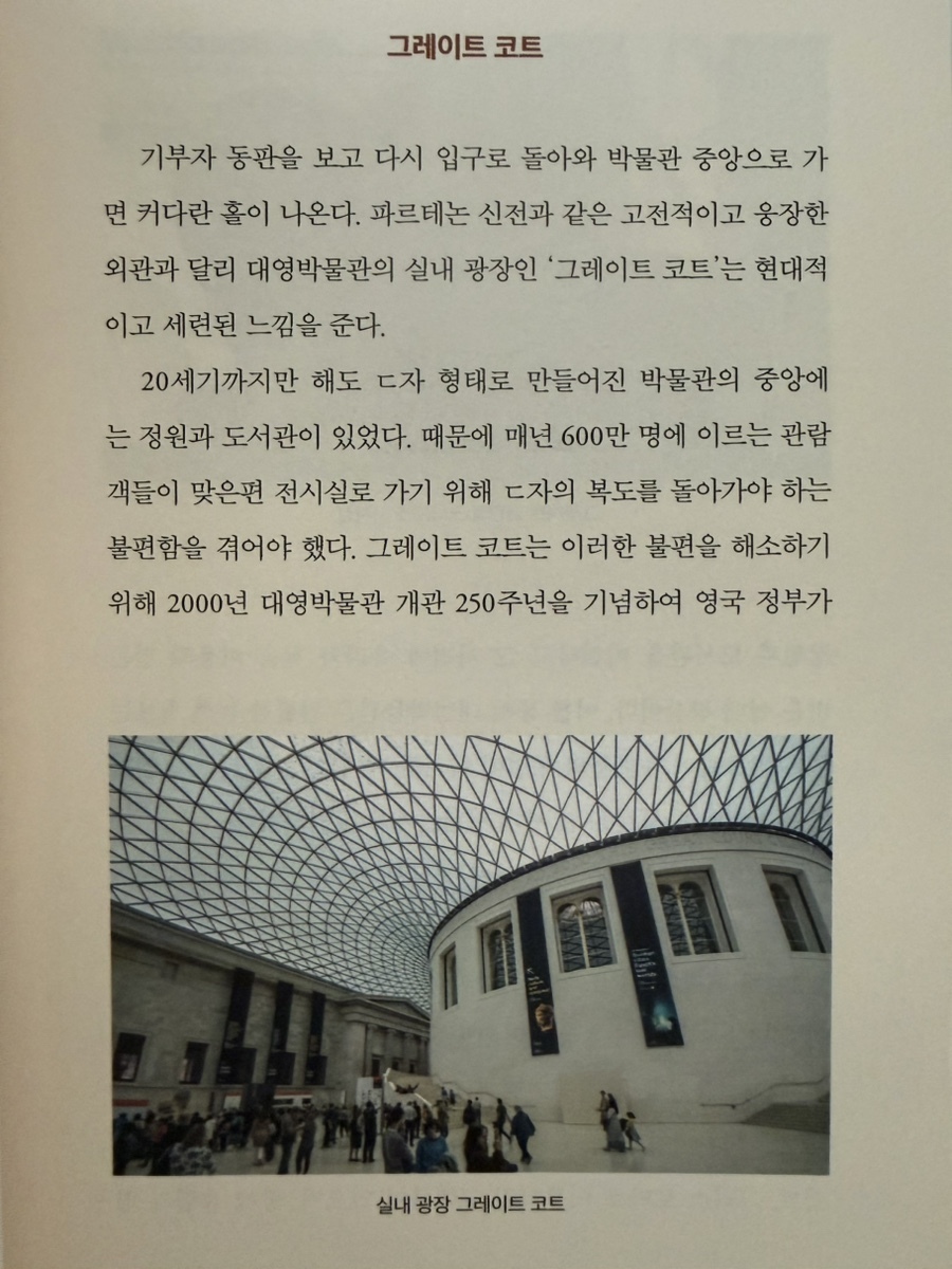 #협찬 도서 나는 가끔 박물관이나 전시회를 찾곤 하는데, 도슨트의 해설을 들은 건 그리 오래되지 않았다. 처음으로 해설을 들었을 때는 “이건 정말 필수야!”라는 생각이 절로 들었다. 특히 나처럼 ‘미술알못’, ‘역사알못’에게 도슨트의 해설은 그야말로 신세계였다. 이 책을 읽게 된 것도 그런 이유에서였다. 당장 갈 수 없는 대영박물관의 대표 유물과 작품을 26년차 도슨트가 생생하게 안내해준다니, 기대하지 않을 수 없었다. 아니나 다를까, 책장을 펼치고 얼마 지나지 않아 당장이라도 짐을 싸서 영국으로 떠나고 싶어졌다. 마침 추석 연휴 때 읽은지라 집에 있으면서도 해외여행을 다녀온 듯한 기분이었다. 책은 대영박물관의 탄생 과정부터 시작된다. 1753년, 유물 수집이 취미였던 의사 한스 슬론 경이 평생 모은 세계 각국의 유물 7만 점을 기부하면서 대영박물관의 역사가 시작되었다고 한다. 그는 “모두가 무료로 관람할 수 있기를” 바랐고, 그 덕분에 대영박물관은 지금까지 무료로 운영되고 있다. 흥미롭게도 우리나라 기업(인)도 기부에 참여했다고 한다. 메소포타미아에서 이집트, 그리스, 로마로 이어지는 유구한 문명과 유물에 담긴 이야기는 정말 흥미진진했다. 특히 인류 최초의 도서관이라 불리는 ‘아슈르바니팔의 점토판 도서관’에 남겨진 글귀는 압권이었다.