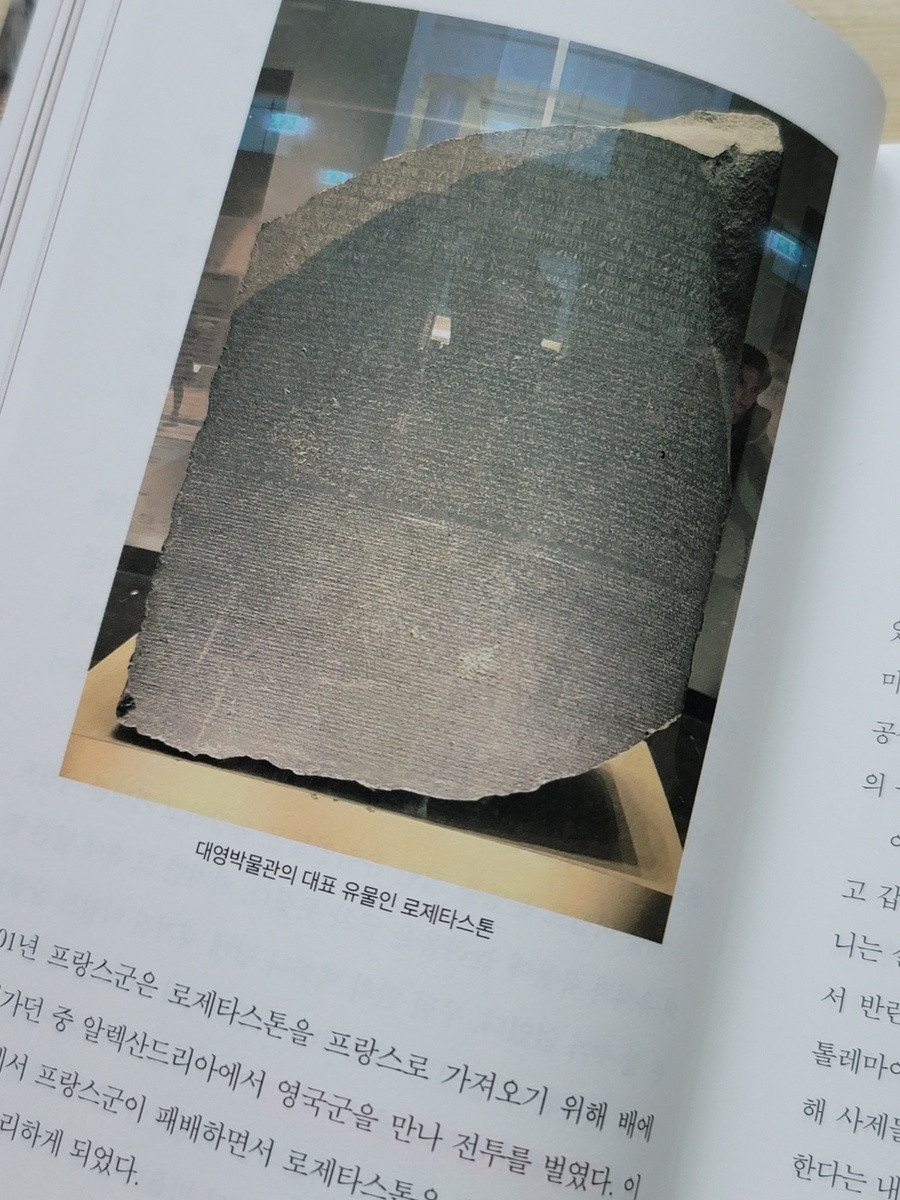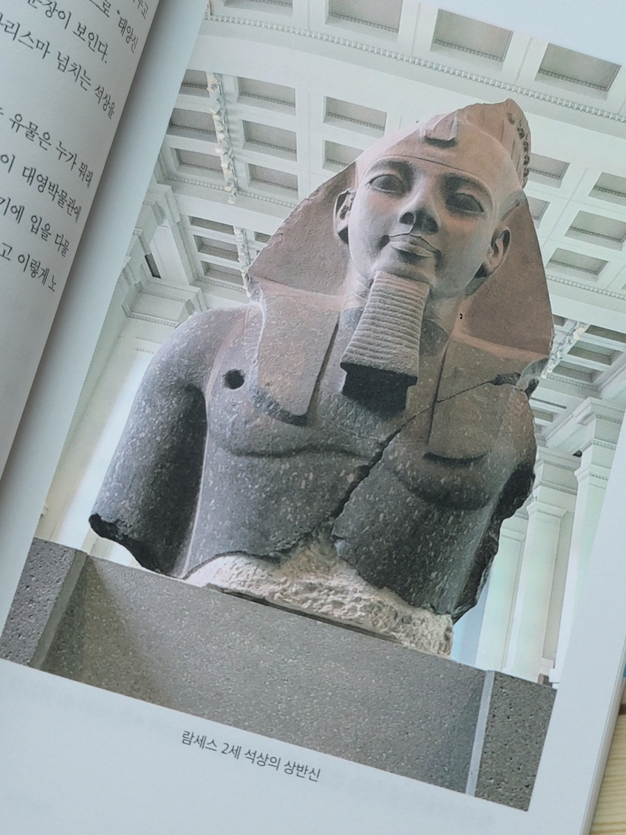 이집트 전시관: 책을 읽으며 가장 안타깝고 분노를 느꼈던 부분이다. 사후 세계에 대한 안내서인 ‘사자의 서’를 비롯해, 미라, 스핑크스, 로제타스톤, 람세스 2세 석상의 상반신 등 고대 이집트의 종교, 정치, 일상생활을 엿볼 수 있는 다양한 유물들이 소개된다.