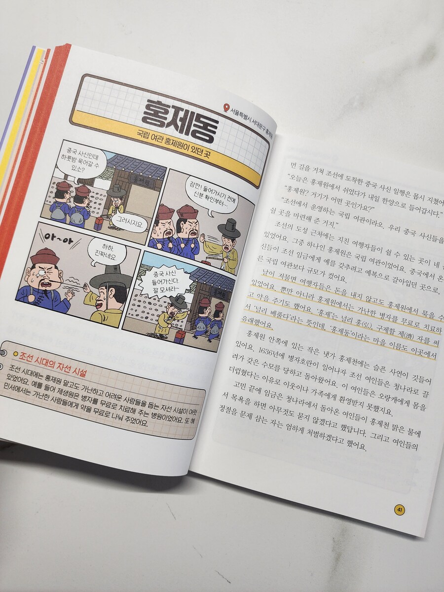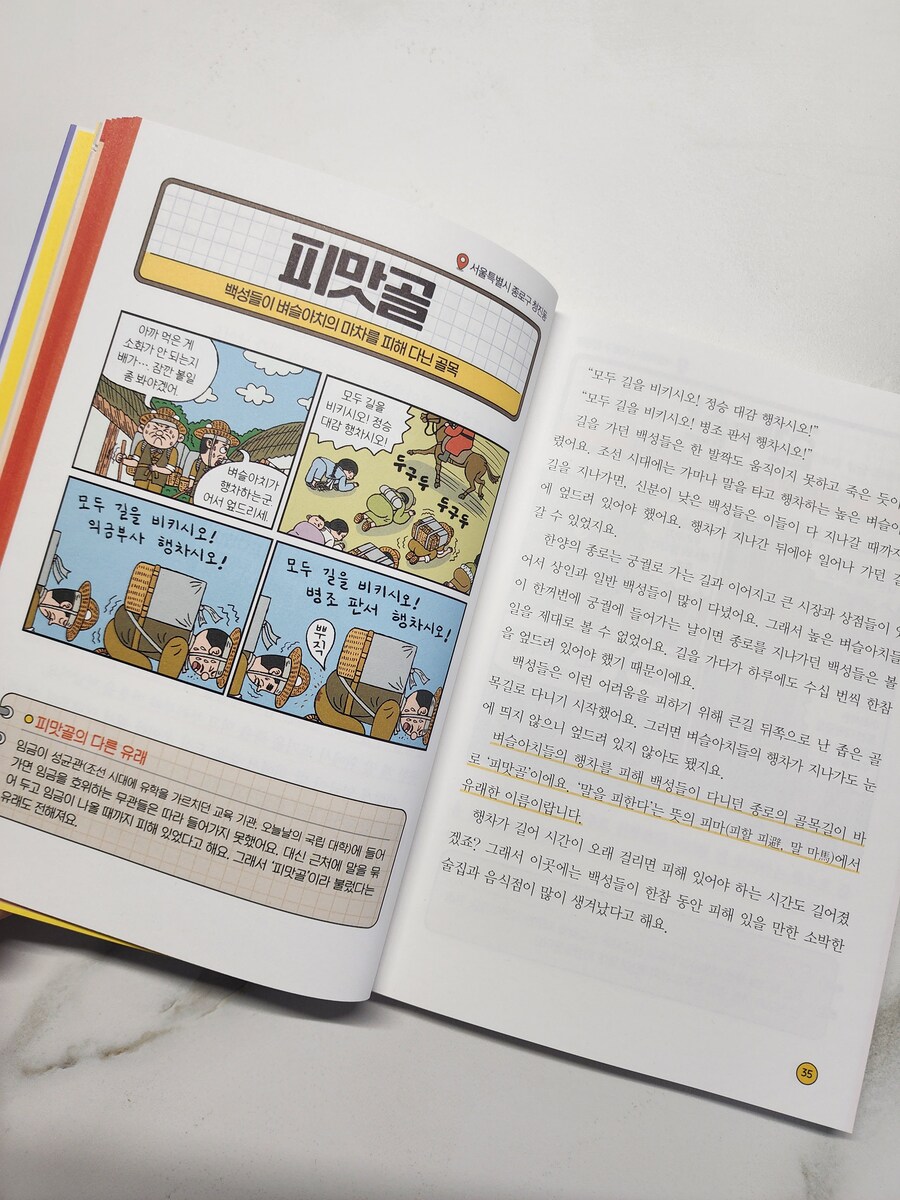 <도서협찬> 지명을 들여다보면 그 속에는 역사와 사람들의 이야기가 숨어 있어요. 그래서 지명을 알고 나면 그냥 부르던 이름이 알고 보면 작은 책 같다는 사실! 책은 우리가 무심히 지나치거나 부르던 이름 하나에도 시대상과 조상들의 지혜까지 담겨 있다는 걸 알려줘요. 예를 들어, 🔸️피맛골 - 서울시 종로구 가마나 말을 타고 다니는 벼슬아치들의 행차를 피해 백성들이 다니던 골목길로 '말을 피한다'는 뜻의 피마(避馬)에서 유래 🔸️홍제동 - 서울시 서대문구 여행자들이 쉬고, 중국 사신들이 예복을 갈아입던 홍제원. ‘널리 베풀다’는 뜻의 홍제(弘濟)에서 유래 🔸️로마 - 이탈리아 늑대 젖을 먹고 자란 로물루스가 자신의 이름을 따 세운 도시라는 건국 신화에서 비롯된 이름 ❝지명을 알면 역사와 지리가 보인다❞ ✔️모든 지명은 유쾌한 네 컷 만화와 함께 설명되어 아이들이 흥미롭게 읽으며 자연스럽게 역사와 지리를 익힐 수 있어요. ✔️ 만화 하단에는 '야간 통행금지는 언제 만들었고 언제 없어졋을까?' '세종은 왜 대왕이라고 할까?'등 배경지식이 함께 담겨 있어 깊이까지 더해줘요. ✔️ 무엇보다 초등 사회 교과와 연계되어 있어 교과서 속 지명이 책 속 이야기와 연결되며 사회 공부가 훨씬 이해하기 쉬워져요. 아이는 책을 읽고 지하철 역이름, 나라별 이름, 음식 이름까지 그 속에 어떤 이야기가 숨어 있을지 궁금해졌다고 찾아보았어요. 《그래서 이런 지명이 생겼대요》는 아이에게는 재미있는 호기심 사전, 부모에게는 대화의 길잡이가 되어 주는 책 같아요. 초등 저학년부터 고학년까지, 지명 속 이야기를 통해 사회 공부에 입문하고 지리에 흥미와 세상을 보는 눈을 키우고 싶은 가족에게 추천합니다. |