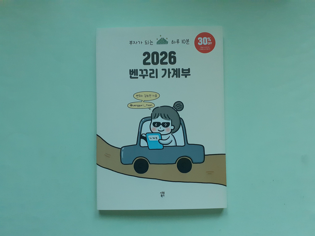 [출판사로부터 도서 협찬을 받았고 본인의 주관적인 견해에 의하여 작성함] 하루 10분으로 부자가 되는 2026 벤꾸리 가계부를 만났습니다. 2025년도 벤꾸리 가계부보다 쓰기 쉬울수 있도록 사이즈는 더 커졌지마 가계부 기능에 집중하여 더 가볍게 출간되어 더욱 좋았습니다.
