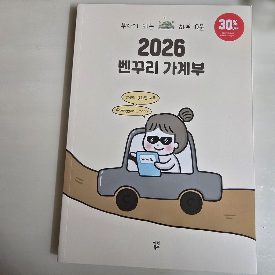 "시원북스 출판사로부터 도서를 제공받아 작성한 리뷰입니다" 얼마 남지 않은 2025년 잘 마무리하고 계시나요?! 연말과 새해가 되면 새로운 출발의 설레임과 함께 시작하는 것이 있죠! 바로 다이어리와 가계부입니다. 사실 제가 가계부를 본격적으로 쓰기 시작한 건 작년부터입니다. 남편과 저 그리고 아이 세식구의 경제 생활을 어려움 없이 지내기 위해, 더 나아가 재테크에도 도움이 될 것 같아 시작했습니다. 그런데 가계부도 정말 다양한 구성의 가계부가 있더라고요. 근데 저에게 맞는 가계부는 좀 더 사용 계정과 금액 외에 좀 더 메모 할 수 있는 가계부가 있으면 좋겠다고 생각했는데 그렇게 저에게 딱 맞는 가계부가 출간되어 살펴봤습니다. 벤꾸리님의 귀여운 재테크툰과 함께 쉽고 재미있게 작성하는 시원북스 출판 벤꾸리 강희연 저자의 『2026 벤꾸리 가계부』 가계부를 처음 사용해보는 분들도 어렵지 않게 꾸준히 작성할 수 있는 심플하면서고 세세한 항목 구분을 통해 주간 및 월간 수입과 지출을 간편하게 점검해보고 재테크 계획을 세울 수 있도록 도와줍니다. 가계부 쓰기 늘 작심삼일로 끝나버린 분들에게 강력히 추천합니다. 가계부 작성을 통해 예산 계획 후 현명한 소비를 통한 돈 모으기에 성공해보세요!돈모으기 짠테크 인플루언서 벤꾸리 강희연 저자님과 함께라면 2026년엔 연말까지 가계부 작성하기 성공 할 수 있을거예요! |