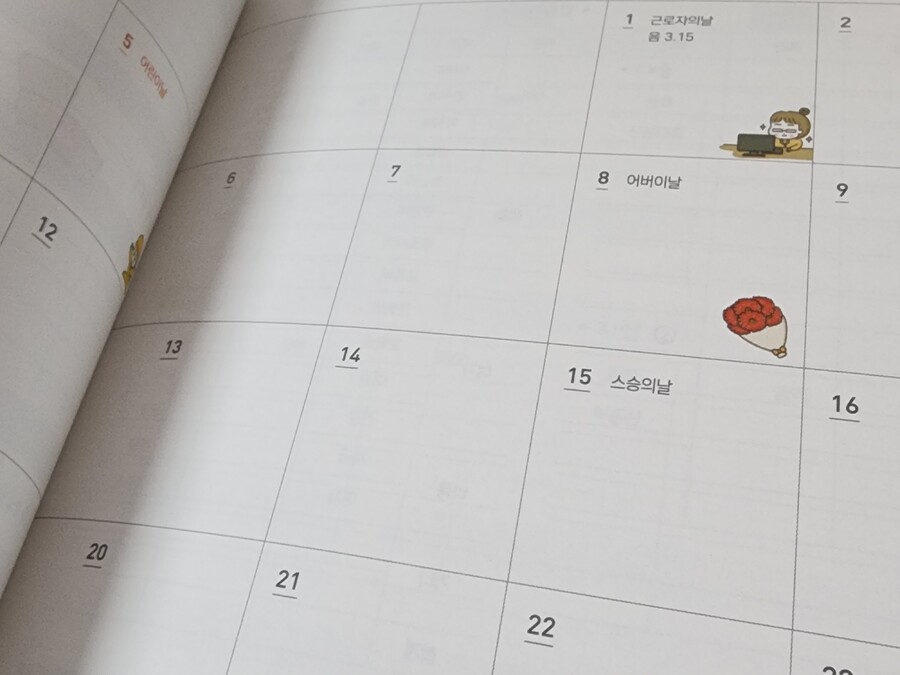 2026 벤꾸리 가계부는 나의 소비 패턴을 파악이 가능하도록 항목별 지출 체크를 통해 고정비와 변동비 계산이 가능합니다. 목표 저툭액에 맞춰 계획적인 소비와 필요지출에 집중이 가능하도록 기록이 쉽게 구성되어 있습니다. 월 수입이 한눈에 파악 가능하도록 자산 현황 정리를 할 수 있도록 세부영역, 예산영역, 결산 영역이 나누어져 있기도 합니다. 이렇게 체계적인 구성도 마음에 들었지만 학생때 다이어리 느낌처럼 귀여운 가계부인 점이 제일 마음에 들었습니다. 중간중간 다양하고 귀여운 그림도 만날 수 있었으며, 귀여운 폰트가 함께하니 더욱 좋았기 때문입니다. 매월 공휴일 칸에는 어떤 귀여운 그림이 있을지 기대도 되며 중간 중간 보이는 로또나 통장 그림 등도 귀여웠습니다. 가계부는 지루하다고 느낄 수 있는데 이렇게 귀여운 그림이 보이니 좀 더 힘을 내서 하나라도 더 생각하고 계획하고 써보자라고 생각할 수 있는 것 같습니다. |