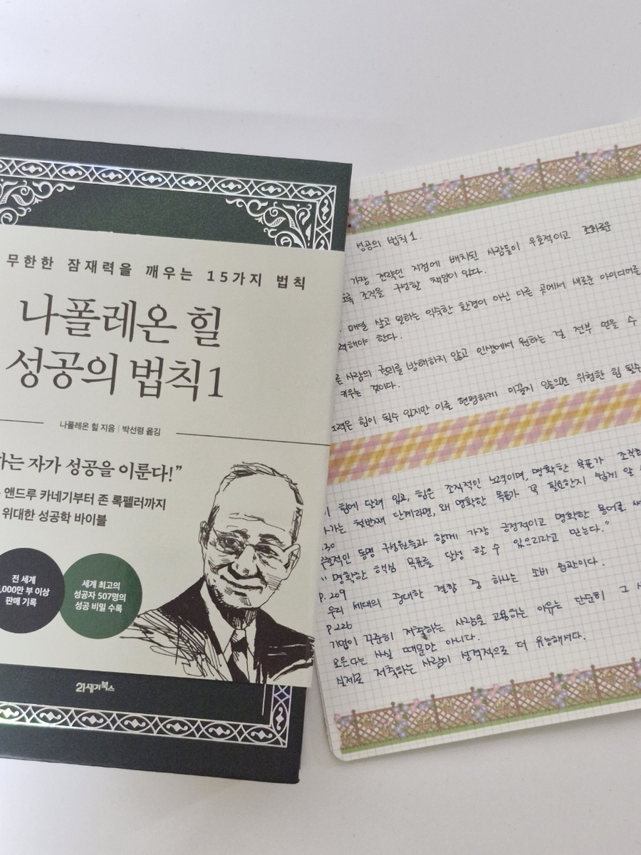 ※ 북이십일 출판사로부터 도서를 제공받아 주관적으로 작성한 글입니다. 📖 도서명 : 나폴레온 힐 성공의 법칙 1 ✒️ 나폴레온 힐 지음 박선령 옮김 🏢 출판사 : 21세기북스 ( @jiinpill21 ) 출간 100주년 기념 '나폴레온 힐 컬렉션' 중 4번째 도서 나폴레온 힐 성공의 법칙 1 나폴레온 힐이 수십년에 걸쳐 성공한 사람들에게서 찾은 15가지의 성공의 법칙 읽으면서 요점은 필사를 하면서 읽고 있는데요. 이 책은 한번에 다 이해하려 하기보다는 자꾸 읽으면서 습관과 태도를 조금씩 바꿔가면서 법칙을 쌓아가는 것이 중요하다는 것을 강조하고 있어요. |