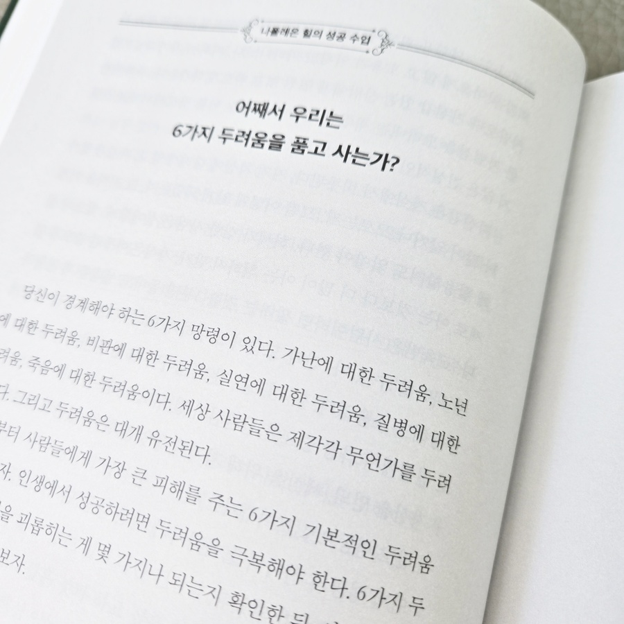-- 21세기북스 누가 불가능을 말하는가? 대체 그는 얼마나 위대한 일을 해냈기에 감히 타인을 판단할 자격이 있다고 하는가? -- 나폴레온 힐 "오직 확신하는 자가 성공을 이룬다!" 나폴레온 힐 컬렉션 '성공의 법칙1'은 총 8개의 파트로 구성되어 있어요. 그 중에 저는 3장 < 마음속 두려움을 지우고 자신감을 채워라 >가 가장 기억에 남는데요. 새로운 일을 시작할 때 긴장과 걱정이 좀 있는 편이거든요. 여러분은 어떠신가요? 나폴레온 힐은 인간이 성공하지 못하는 가장 큰 장애물이 ‘두려움’ 이라고 말합니다. 그는 두려움이 실체가 아니라, 우리가 만들어낸 마음의 그림자일 뿐이라고 말 합니다. 실제보다 상상 속에서 부풀려진 공포가 우리의 행동을 묶고, 가능성을 가로막는다는 그의 말은 자신감을 키우기 위해 가장 먼저 내면의 두려움에 주목해야 할 필요성이 느껴집니다. 📍 인간을 괴롭히는 6가지 기본적인 두려움 ✔️ 가난에 대한 두려움 ✔️ 노년에 대한 두려움 ✔️ 비판에 대한 두려움 ✔️ 실연에 대한 두려움 ✔️ 질병에 대한 두려움 ✔️ 죽음에 대한 두려움 6가지 중 어떤 두려움이 내 마음을 잡고 있는지 체크해 보세요. 완벽한 상황을 기다리지 말고 작은 행동부터 옮겨보는 게 두려움을 약화시키는 지름길이겠죠? 결국 두려움은 우리를 멈추게 하는 게 아니라, 움직이게 만드는 신호일지도 모르겠어요. 성공을 위해 무의식을 중요하게 생각하는 나폴레온 힐 은 잘 될 것이라는 믿음과 자기암시의 중요성을 강조합니다. 긍정적인 확언을 반복함으로써 무의식의 패턴을 바꾸라고 합니다.두려움을 몰아내는 방법이 단순히 ‘용기’가 아니라, 생각을 훈련하는 힘이라는 점 을 기억해겠어요. #나폴레온힐성공의법칙1 #21세기북스 #돈을끌어당기는기회_저축습관으로만들어라 #왜항상만족은멀리있는가? #성공을가로막는우리내면의적은누구인가 #자기계발서 #필사책추천 #성공의무한한잠재력을깨우는15가지법칙 |