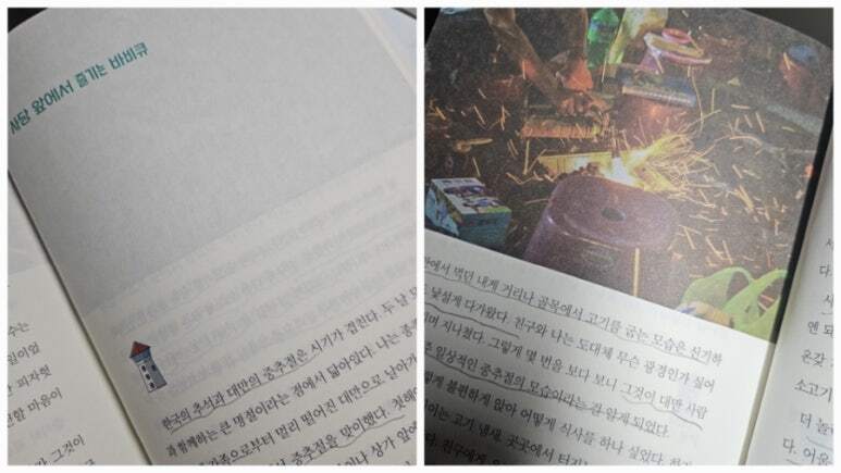 대만의 중추절이 이렇게 살갑게 느껴진다니, 감탄이 절로 나왔다. 가족들이 삼삼오오 모여 집 앞마당에서 고기를 구워 바비큐 파티를 한다는 문화는 충격과 동시에 우리가 원하는 명절이 아닐까 하면서 부러움을 불러일으켰다. 별다른 음식을 준비하지 않아도 좋아하는 재료를 그냥 그릴에 구워 식빵에 싸서 먹고 이야기를 나누는 모습이 정겹고, 가족의 사랑이 느껴지는 것 같았다. 저자가 초대받아 방문한 중추절 바비큐 파티는 신선한 문화 충격인 동시에 언어의 부재도 문제가 되지 않을 만큼 행복한 시간이었다고 한다. 대만의 바비큐 문화는 광고 화면의 영향으로 시작되어 명절의 간소화 덕분에 웃음꽃이 만개하는 가족의 모습을 선물한 풍습이 된 것 같다. 사진의 모습만 봐도 정겨움이 넘쳐난다. 정말 《이토록 다정한 대만이라니》를 읽는 동안, 나의 어린 시절 동네를 친절하게 안내해 주는 기분이 들 정도로 친근하게 느껴졌다. 골목의 사람들의 온기가 직접 느껴지는 것 같고, 음식으로 풍습을 알 수 있었고, 빠르지 않은 느림이 포근함을 안겨 주었다. 저자에게 대만은 쉬고 싶고, 머물고 싶은 그런 다정함이 느껴지게 하는 공간이 아닐까 했고, 사진 속 장면들은 대만을 가고 싶게 하는 풍경을 안겨주었다. 책을 덮고 이렇게 오랜 여운을 간직하게 되어 많은 독자분들이 함께 느꼈으면 하는 바람을 전해본다. <본 포스팅은 푸른 향기 서포터즈로서 책을 지원받아, 필자의 주관적인 견해로 직접 작성된 포스팅입니다.> |