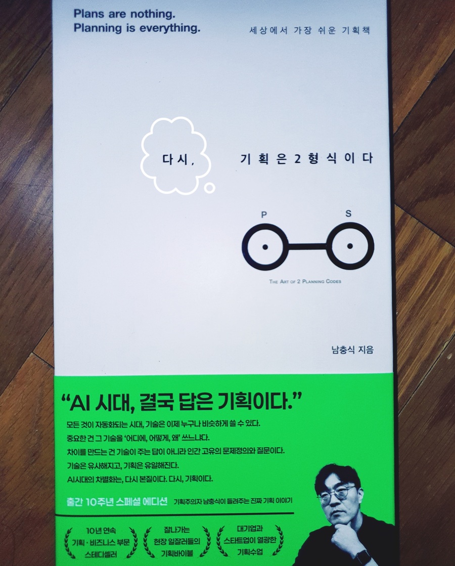 나는 책의 저자 남충식 님이 참 고맙다. 10년 전쯤에 이 '기획은 2형식이다'라는 책을 읽고 실제로 큰 도움이 받았었다. 디자이너라는 직업을 가지고 있는 나는, 광고주에게 일이 들어오고 OT를 받으면 어김없이 아이디어 회의를 해야 하는 날이 많았다. 그러면 나는 기획자, 카피라이터, 디자이너들과 같이 회의를 하는데 그때 내 의견을 내야 했다. 나의 기획은 아이디어에 맞물려있었다. 디자이너인 나에게도 '기획'이란 업무 중에 하나였던 셈이다. 항상 장황하게 늘어놨던 내 생각을 책을 읽은 후 간결하게 '이래서, 이렇게 생각했어요'라고 간단하게 하는 방향으로 바꾸었다. 사회생활 속에서 내가 느꼈던 것 중 하나는 이후 상대방의 이해도가 엄청 빠른 거 같다는 생각을 했었다. 시간이 많이 흐리고 지금의 회사로 이직했을 때 같은 부서 직원 책상 위에 이 책이 있어서, 어찌나 반갑던지! 심지어 두 명이나 이 책이 있다. 정말 실무자들이 사랑하는 책이라는 것을 다시 한번 느낄 수 있었다.